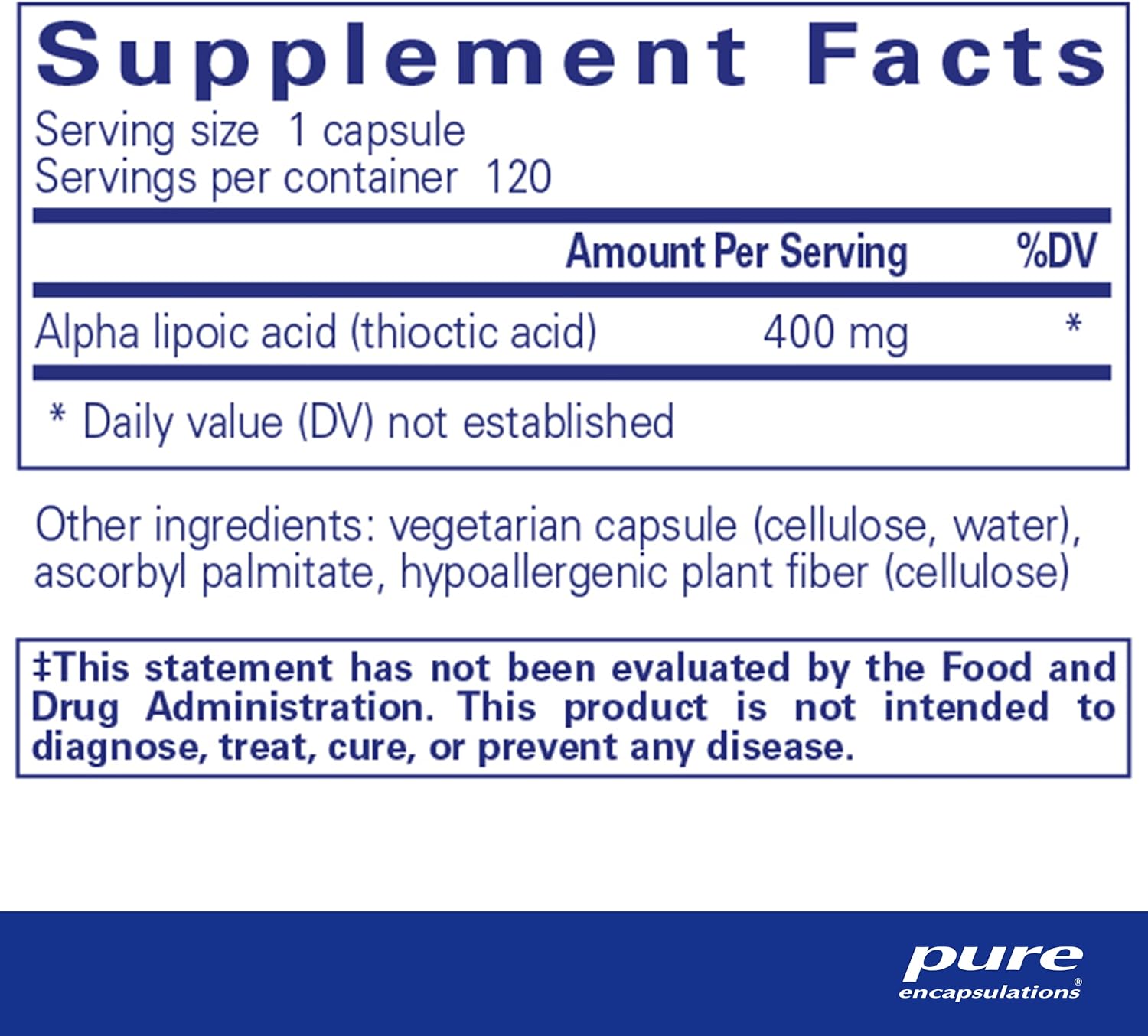 Pure Encapsulations Alpha Lipoic Acid 400 Mg | Ala Supplement For Liver Support, Antioxidants, Nerve And Cardiovascular Health, Free Radicals, And Carbohydrate Support* | 120 Capsules