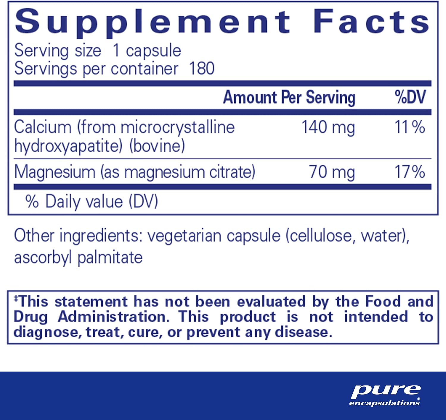 Pure Encapsulations Calcium Mcha With Magnesium | Hypoallergenic Dietary Supplement For Bone Support | 180 Capsules