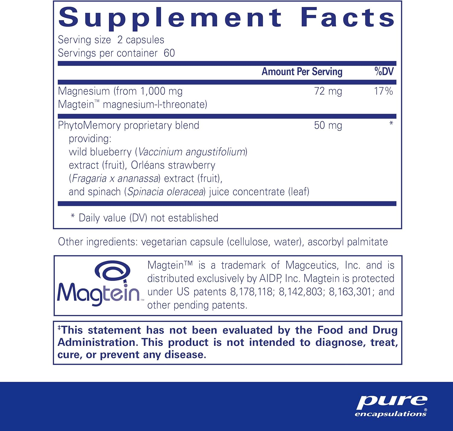 Pure Encapsulations Cognimag 120'S - Magnesium-L-Threonate Supplement - Supports Brain Health & Memory* - Includes Magtein & Polyphenol Blend - 120 Capsules