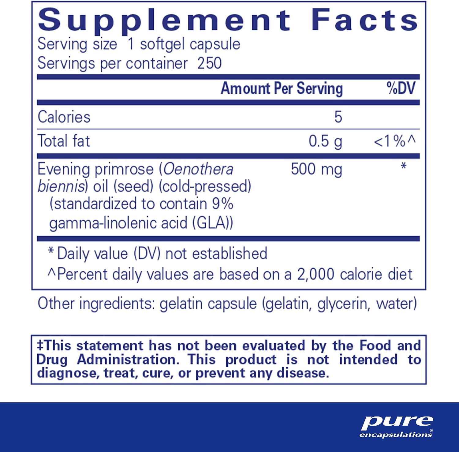 DESCRIPTION : Pure Encapsulations E.P.O. (Evening Primrose Oil) | Hypoallergenic Dietary Supplement Containing 9% GLA | 250 Softgel Capsules