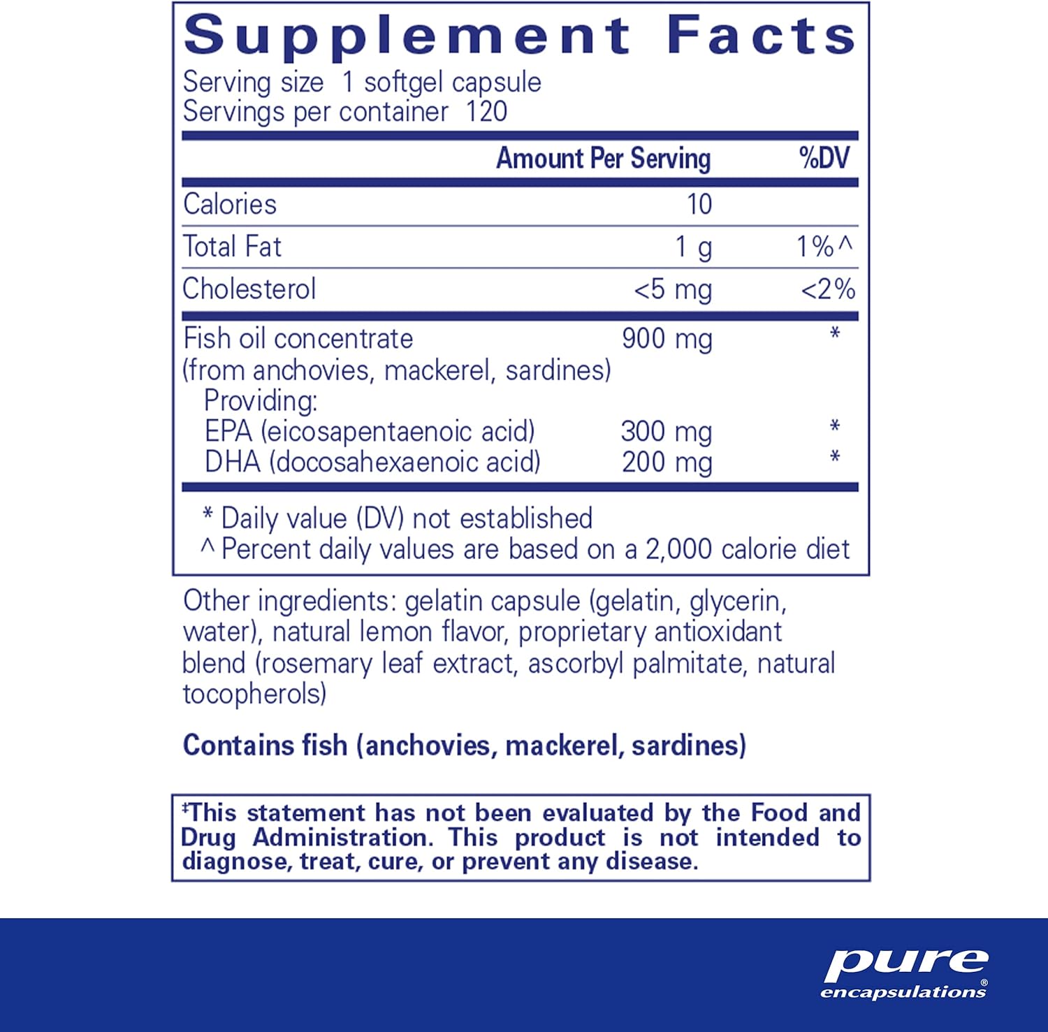 Pure Encapsulations Epa/Dha With Lemon | Ultra-Pure, Molecularly Distilled Fish Oil Concentrate With Lemon | 120 Softgel Capsules