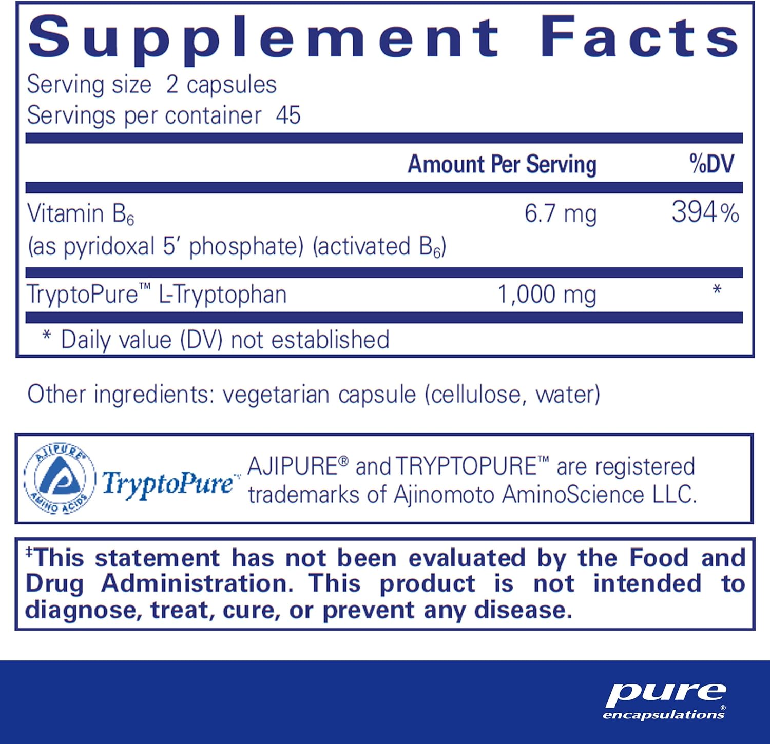 Pure Encapsulations L-Tryptophan | Amino Acid Supplement For Relaxation, Serotonin Support, Pms, And Sleep* | 90 Capsules