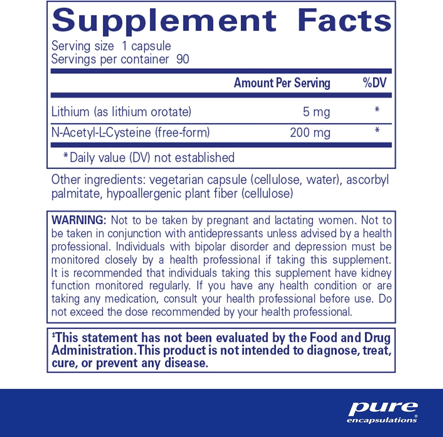 Pure Encapsulations Lithium Orotate 5 Mg - Brain Support Supplement - With N-Acetyl-L-Cysteine (Nac) For Memory & Brain Behavior* - Gluten Free & Non-Gmo - 90 Capsules