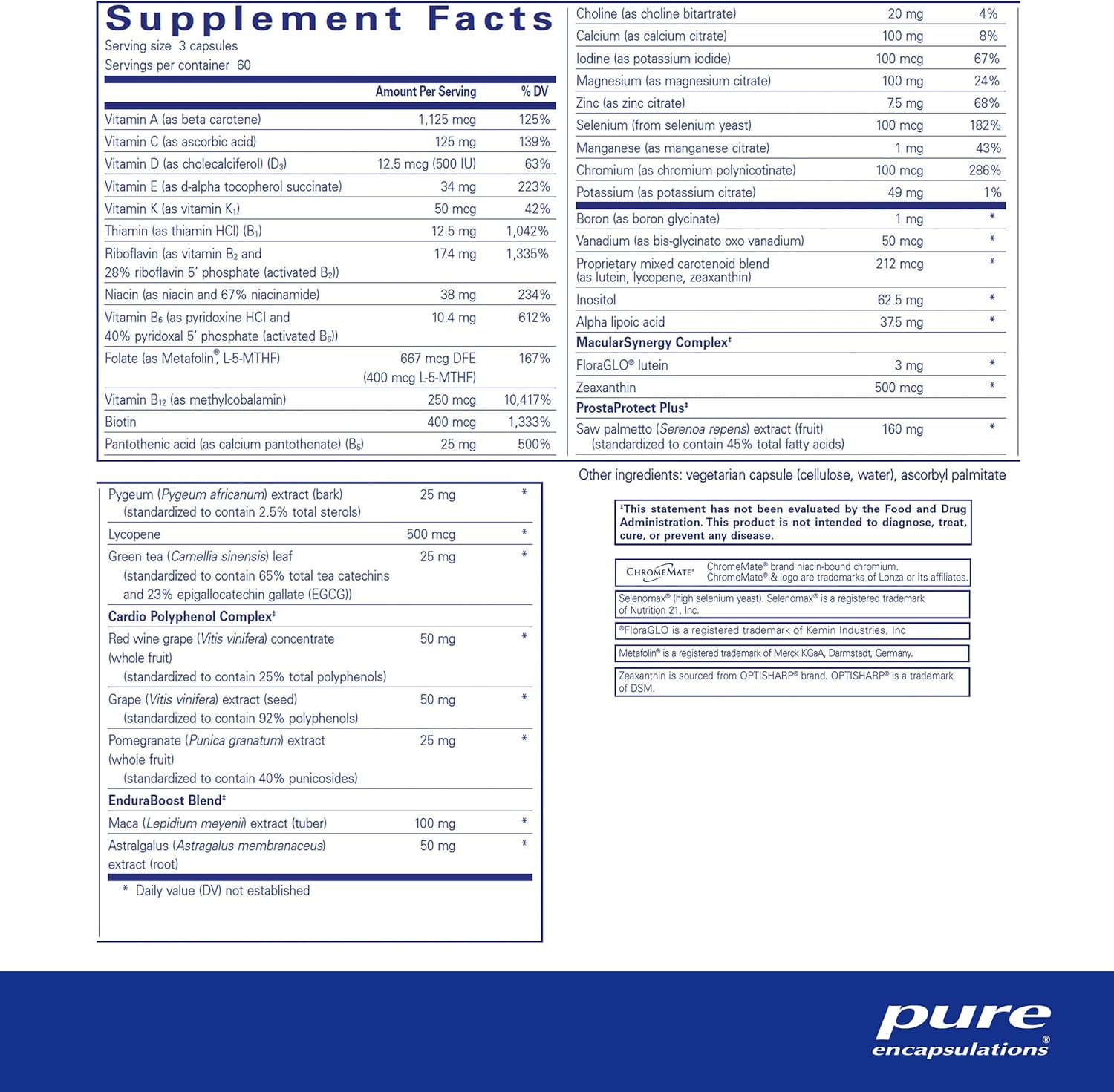 Pure Encapsulations Men'S Nutrients - Multivitamin Mineral Supplement To Support Energy, Endurance & Stamina In Men Over 40* - With Vitamin D, Vitamin C & Trace Minerals - 180 Capsules