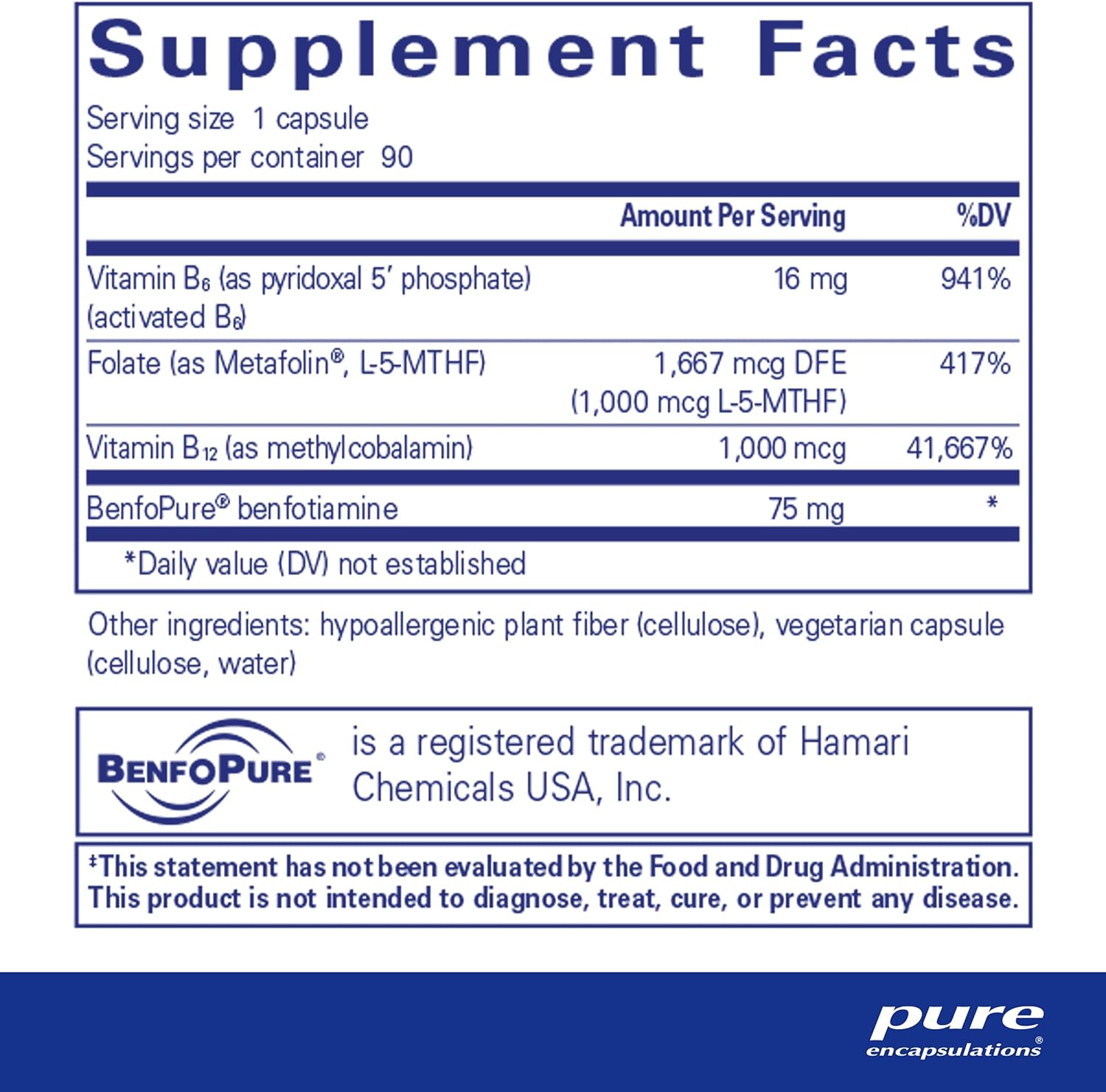 B Vitamin Complex: MethylAssist 90's features a vitamin B complex including activated B6, B12, and benfotiamine, making it an exceptional vitamin B supplement for neuronal health