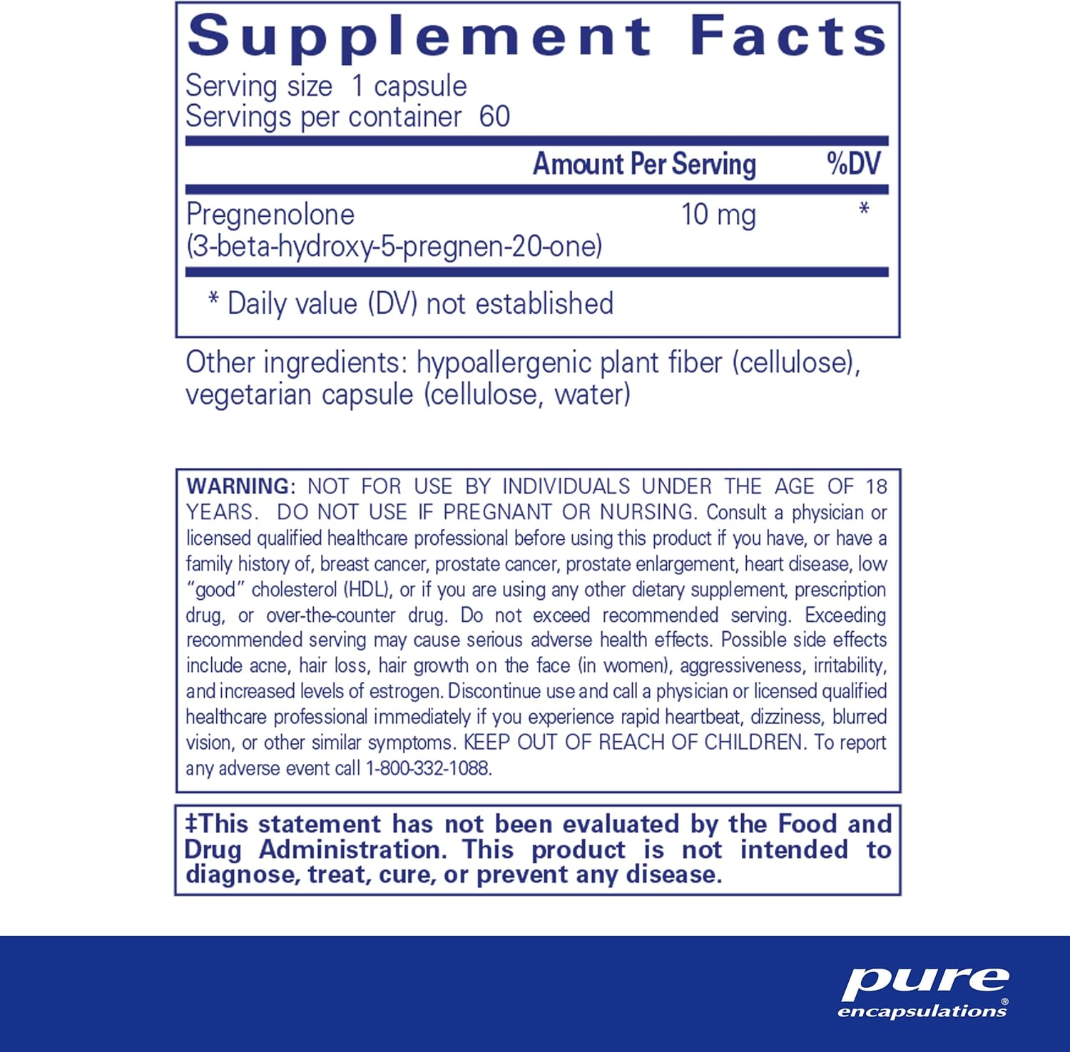Pure Encapsulations Pregnenolone 10 Mg - Support Memory & Hormone Balance* - Hormone Precursor - Gluten Free & Non-Gmo - 60 Capsules