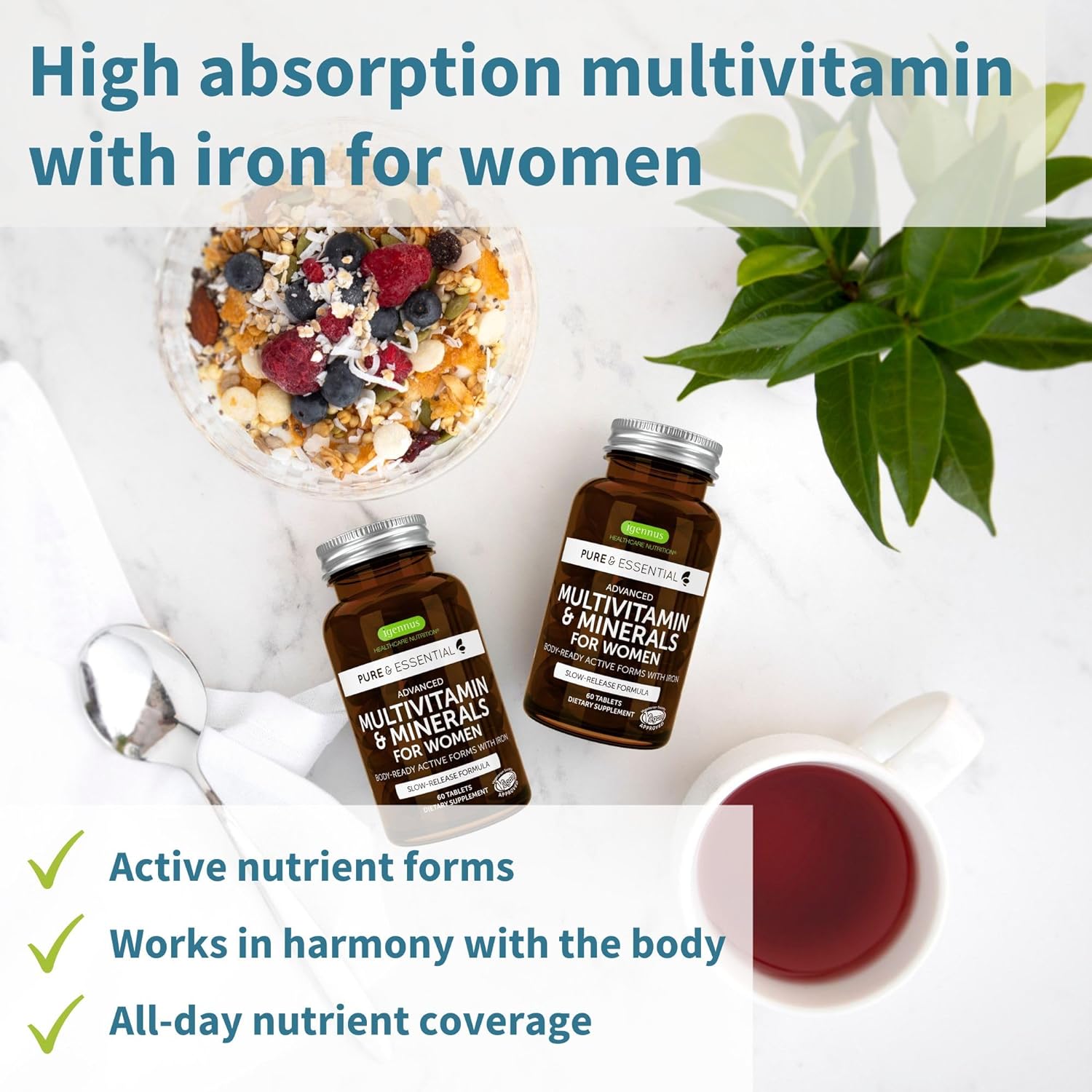 SLOW RELEASE, HIGH ABSORPTION FORMULA: blood nutrient levels are optimised with bioactive vitamin forms & slow release delivery, for all day nutrient coverage