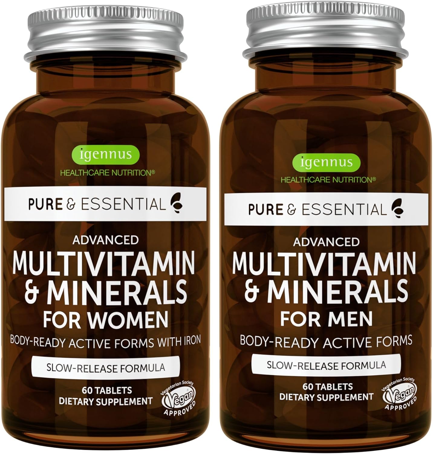 Pure & Essential Men & Women’S Multivitamin Bundle, Sustained Release & Active Forms, 60 Tablets By Igennus