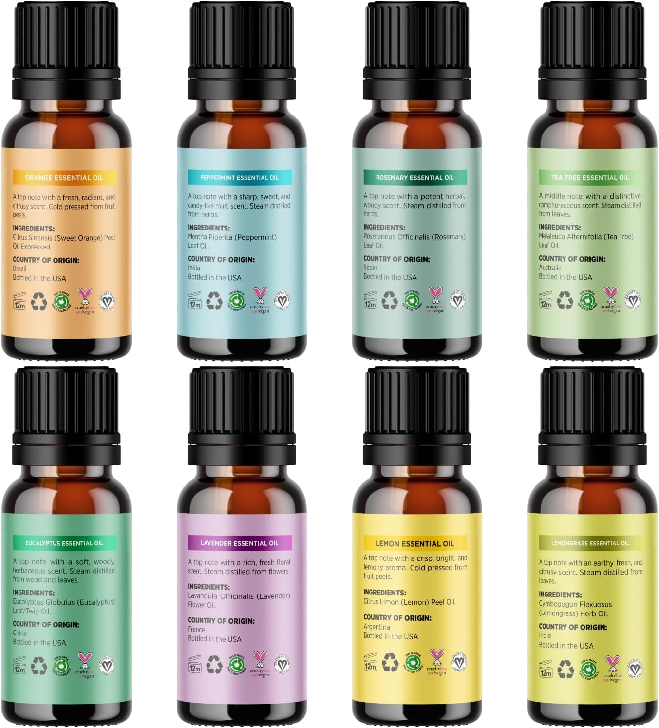 Aromatherapy Oils - Embrace Some Of Nature’S Best Oils Including Lavender Tea Tree Rosemary Orange Lemon Eucalyptus Lemongrass And Peppermint Oils For The Ultimate Essential Oils Kit Or Gift Set