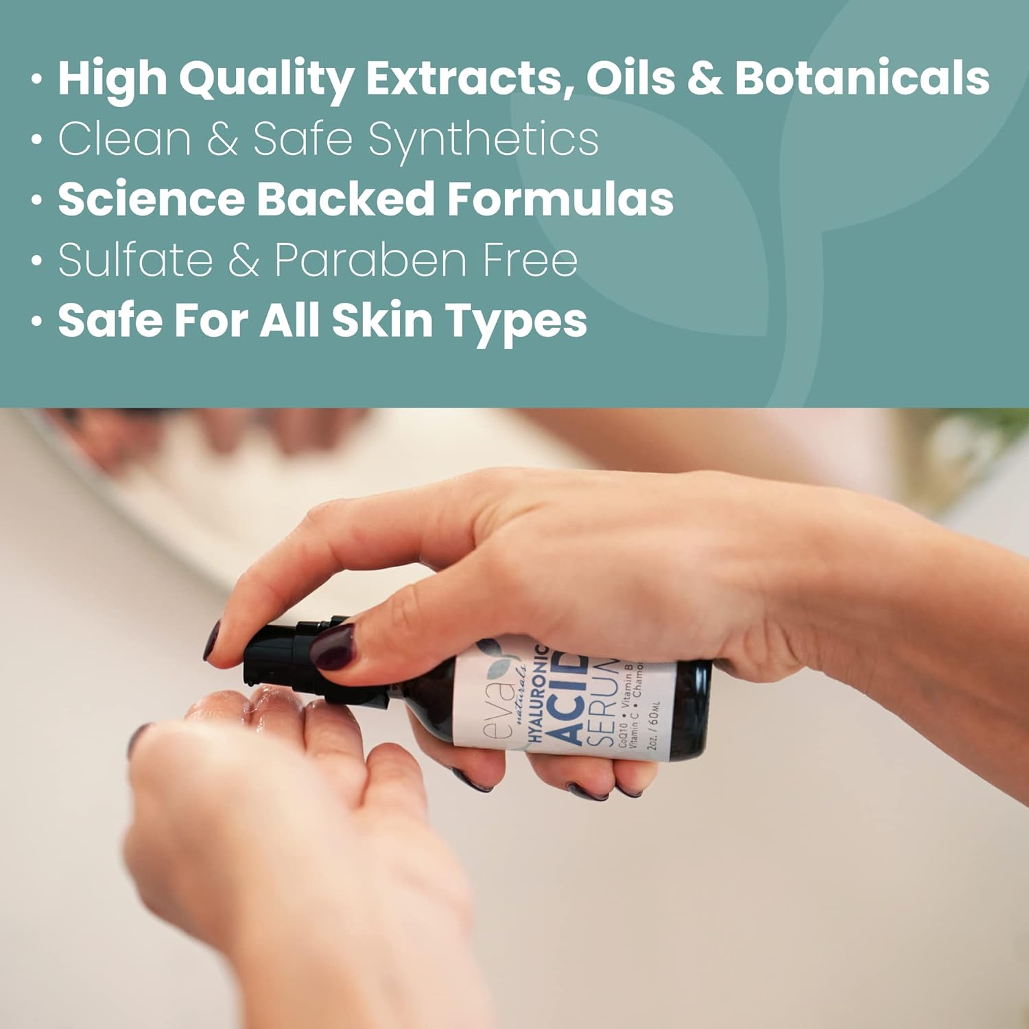 THERAPEUTIC & ANTI-AGING FORMULA - This hydrating facial serum with Hyaluronic Acid and Vitamin C & B is made to effectively deliver intense hydration by improving and balancing the skin's natural complexion. Hyaluronic acid moisturizer helps reduce the appearance of fine lines on the forehead, neck, crows feet, stretch marks & scars!EXPERIENCE A YOUTHFUL & GLOWING COMPLEXION - Don’t let your dull complexion rob you of your confidence! Considered a must-have in any face care cleaning routine, this hyaluronic acid anti-aging serum is the perfect simple addition for truly softer & plumped skin, giving you a radiant & youthful complexion - making it the perfect hydrating face serum for women and menDEEPLY HYDRATE & MOISTURIZE - Dullness and dry patches draining your skin of its natural radiance The pure hyaluronic acid serum, is the perfect hydrating serum for face as it is not only highly effective for wrinkle and dark spot reduction, but it also allows for deeply penetrating hydration and moisture to the skin pores. With the ability of hyaluronic acid to hold more than 1000 x’s its water weight, your skin is able to retain its natural moisture for all-day dewiness and hydrationCRUELTY FREE - Created with a blend of premium quality ingredients, you don’t have to worry about toxic parabens, dyes or fragrances, sulfates, or phthalates clogging your pores when using this natural & safe formula. Not to mention, like all products, this potent anti-aging hyaluronic formula is and always will be cruelty free