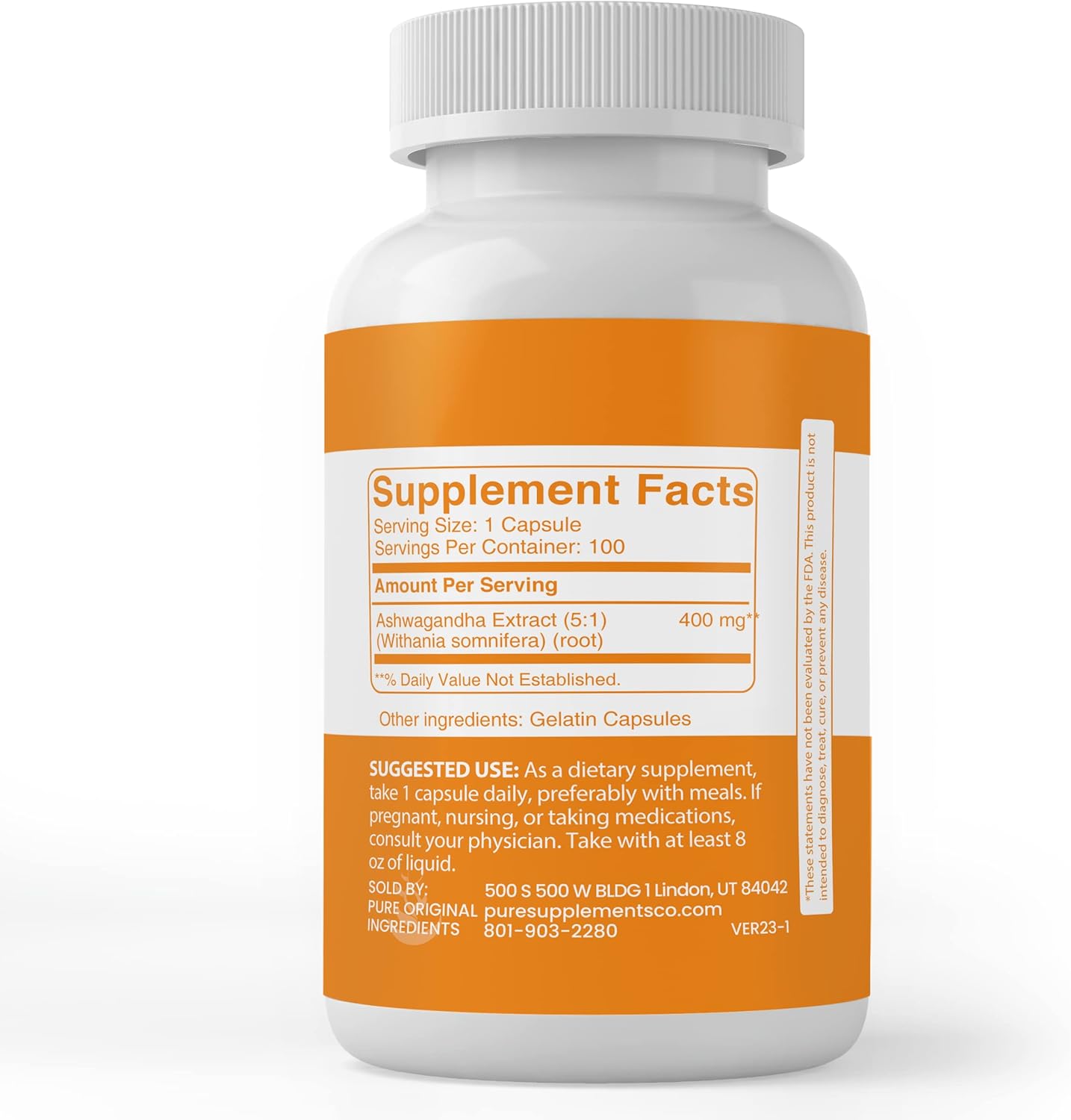 Pure Original Ingredients Ashwagandha (100 Capsules) Always Pure, No Additives Or Fillers, Lab Verified