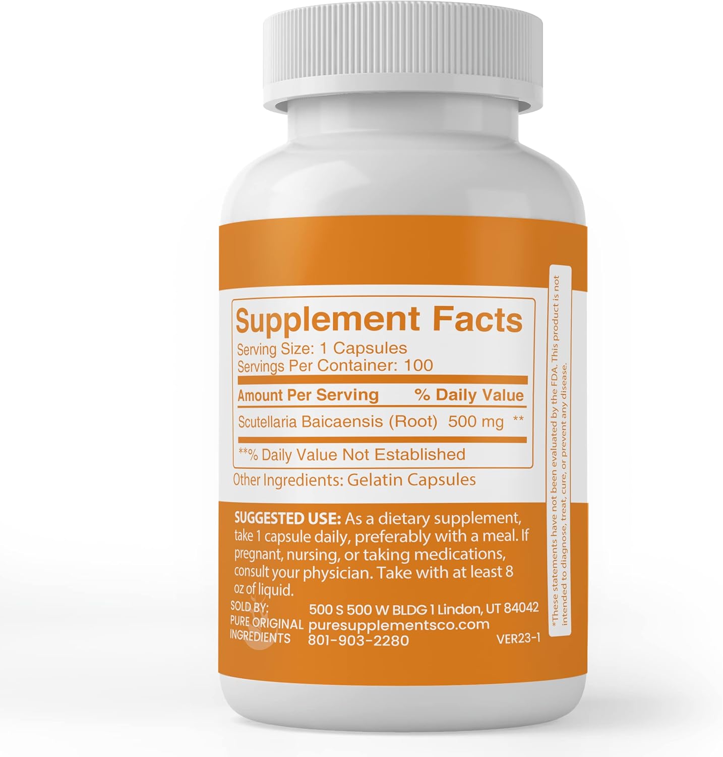 Pure Original Ingredients Baicalin, (100 Capsules), Chinese Skullcap, Always Pure, No Additives Or Fillers, Lab Verified