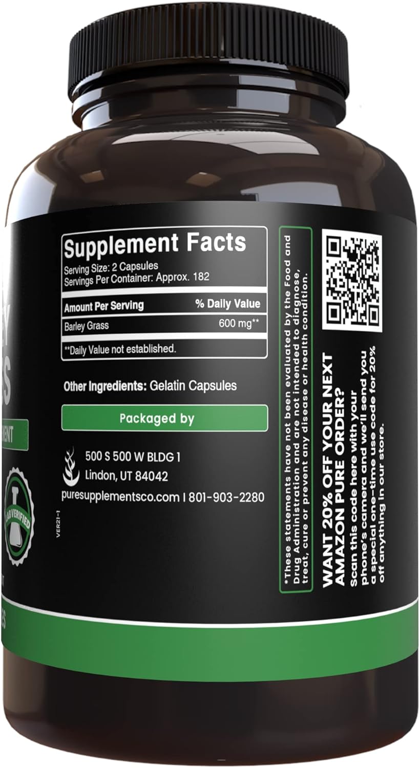 Pure Original Ingredients Barley Grass (365 Capsules) No Magnesium Or Rice Fillers, Always Pure, Lab Verified