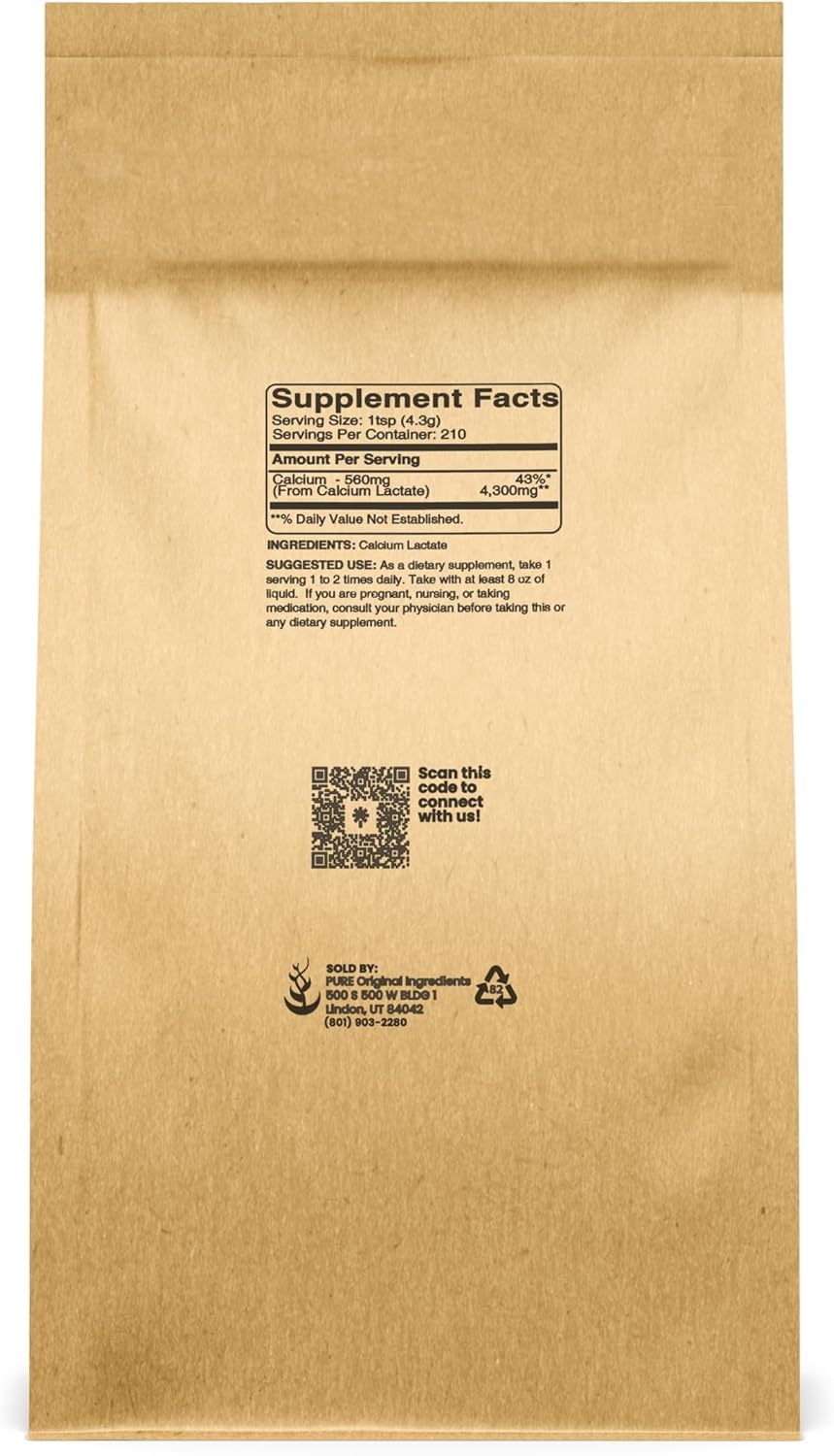 Pure Original Ingredients Calcium Lactate Powder Is Made From A Single Ingredient, Providing A Pure Undiluted Supplement