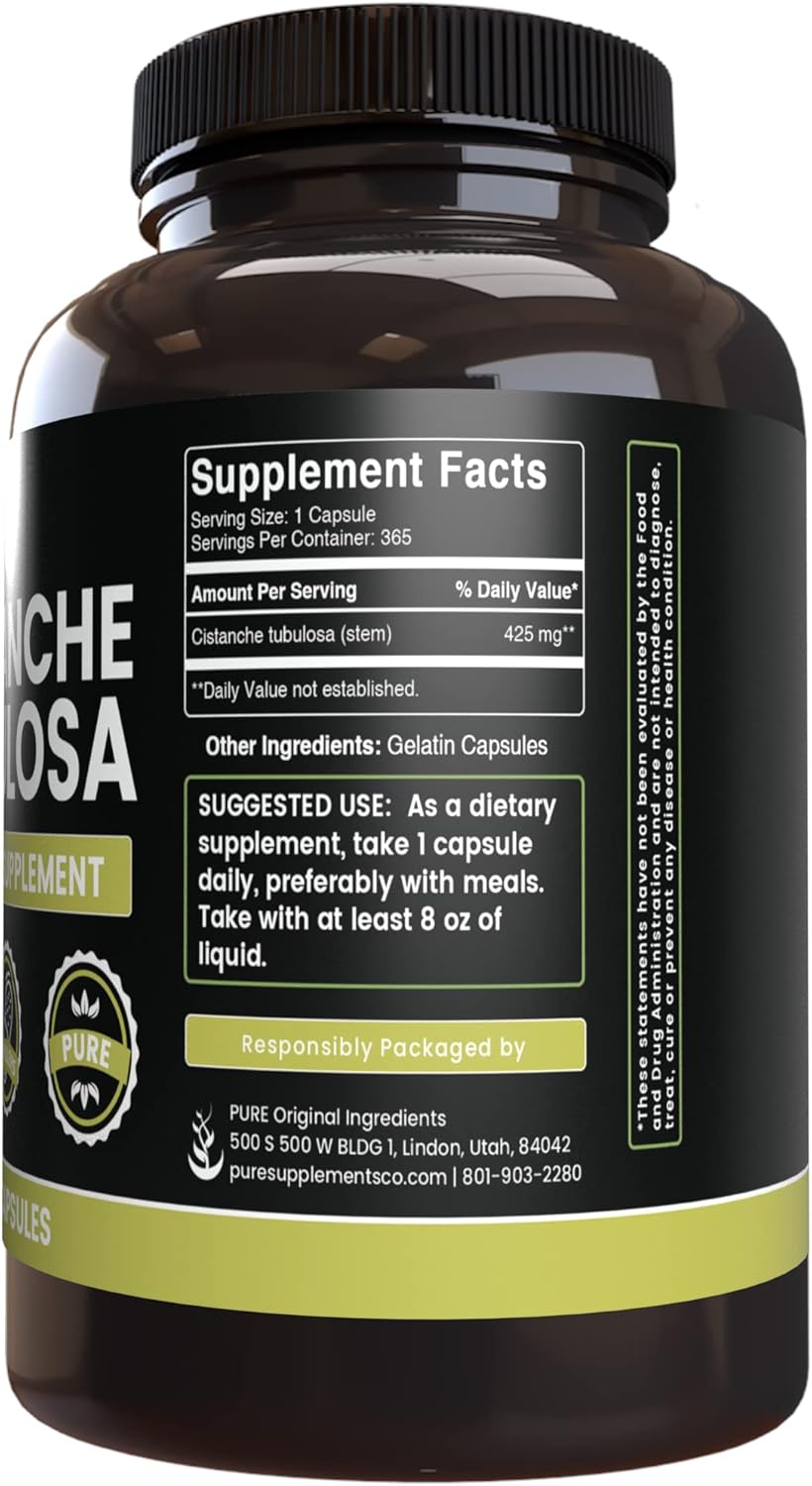 Pure Original Ingredients Cistanche Tubulosa (365 Capsules) No Magnesium Or Rice Fillers, Always Pure, Lab Verified