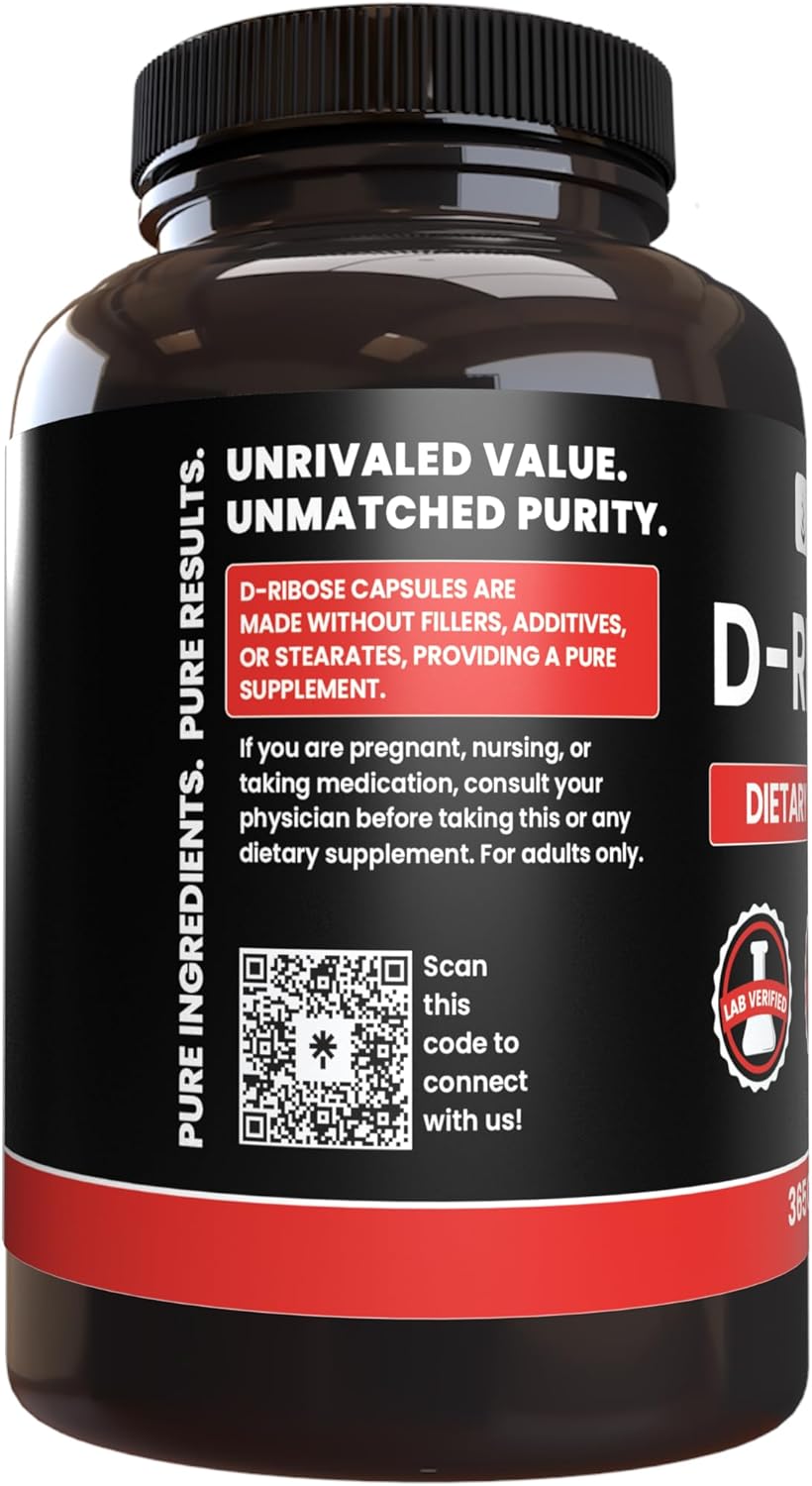 Pure Original Ingredients D-Ribose (365 Capsules) No Magnesium Or Rice Fillers, Always Pure, Lab Verified
