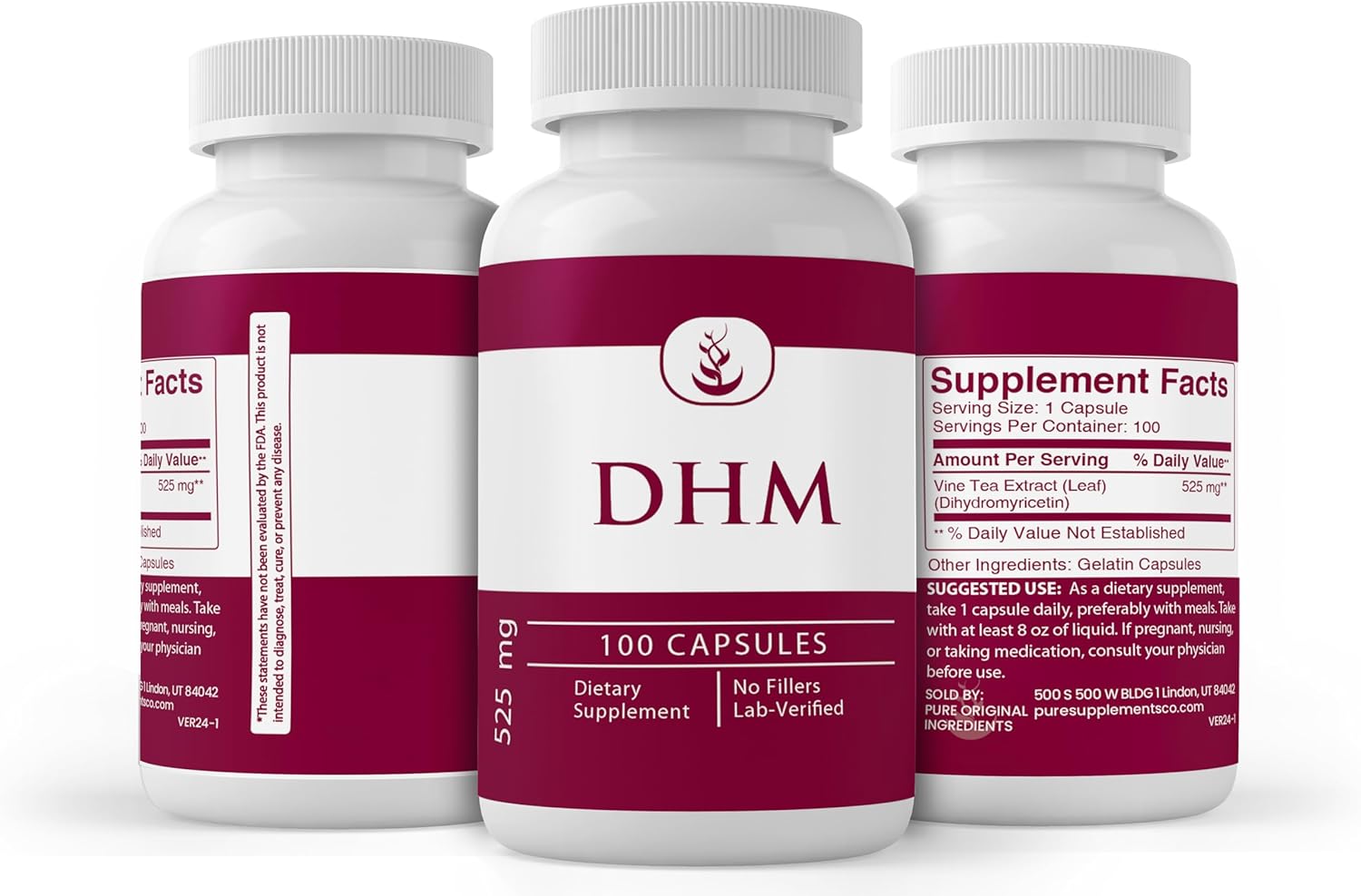 Pure Original Ingredients Dhm (Dihydromyricetin), (100 Capsules) Always Pure, No Additives Or Fillers, Lab Verified