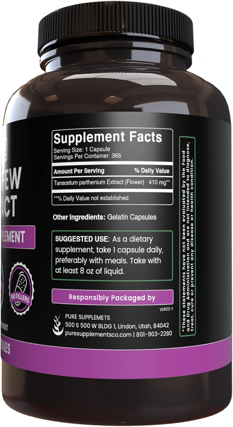 Pure Original Ingredients Feverfew Extract (365 Capsules) No Magnesium Or Rice Fillers, Always Pure, Lab Verified