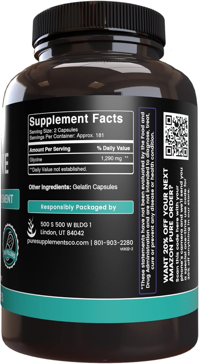 Pure Original Ingredients Glycine (365 Capsules) No Magnesium Or Rice Fillers, Always Pure, Lab Verified