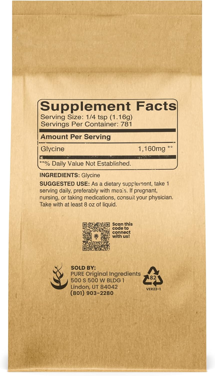 Pure Original Ingredients Glycine Powder Is Made From A Single Ingredient, Providing A Pure Undiluted Supplement