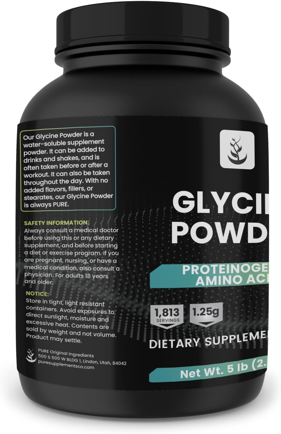 Pure Original Ingredients Glycine Powder, 5 Lb, No Magnesium Or Rice Fillers, Lab Verified