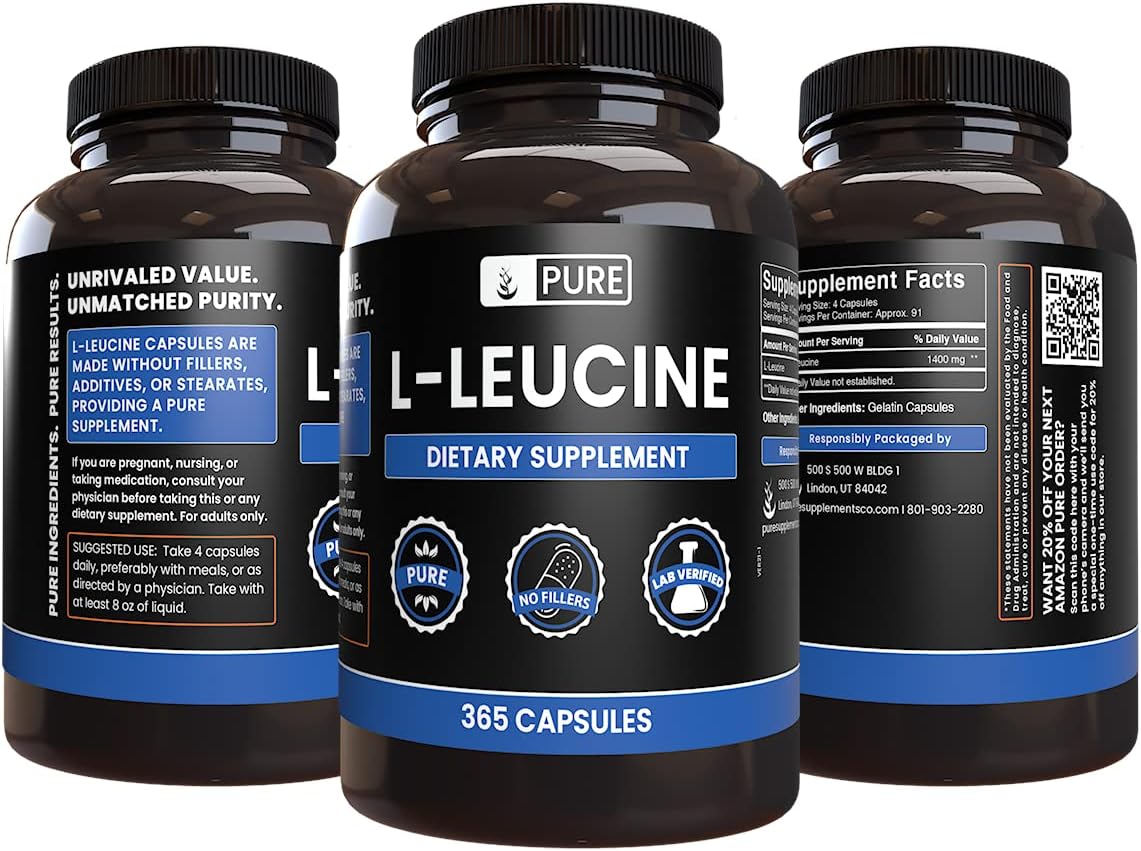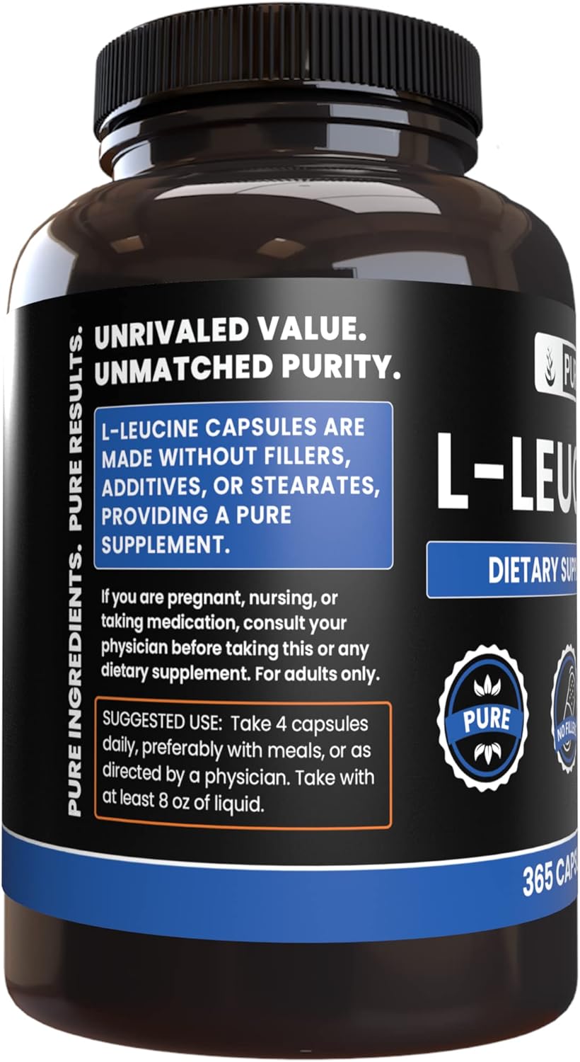 Pure Original Ingredients L-Leucine (365 Capsules) No Magnesium Or Rice Fillers, Always Pure, Lab Verified