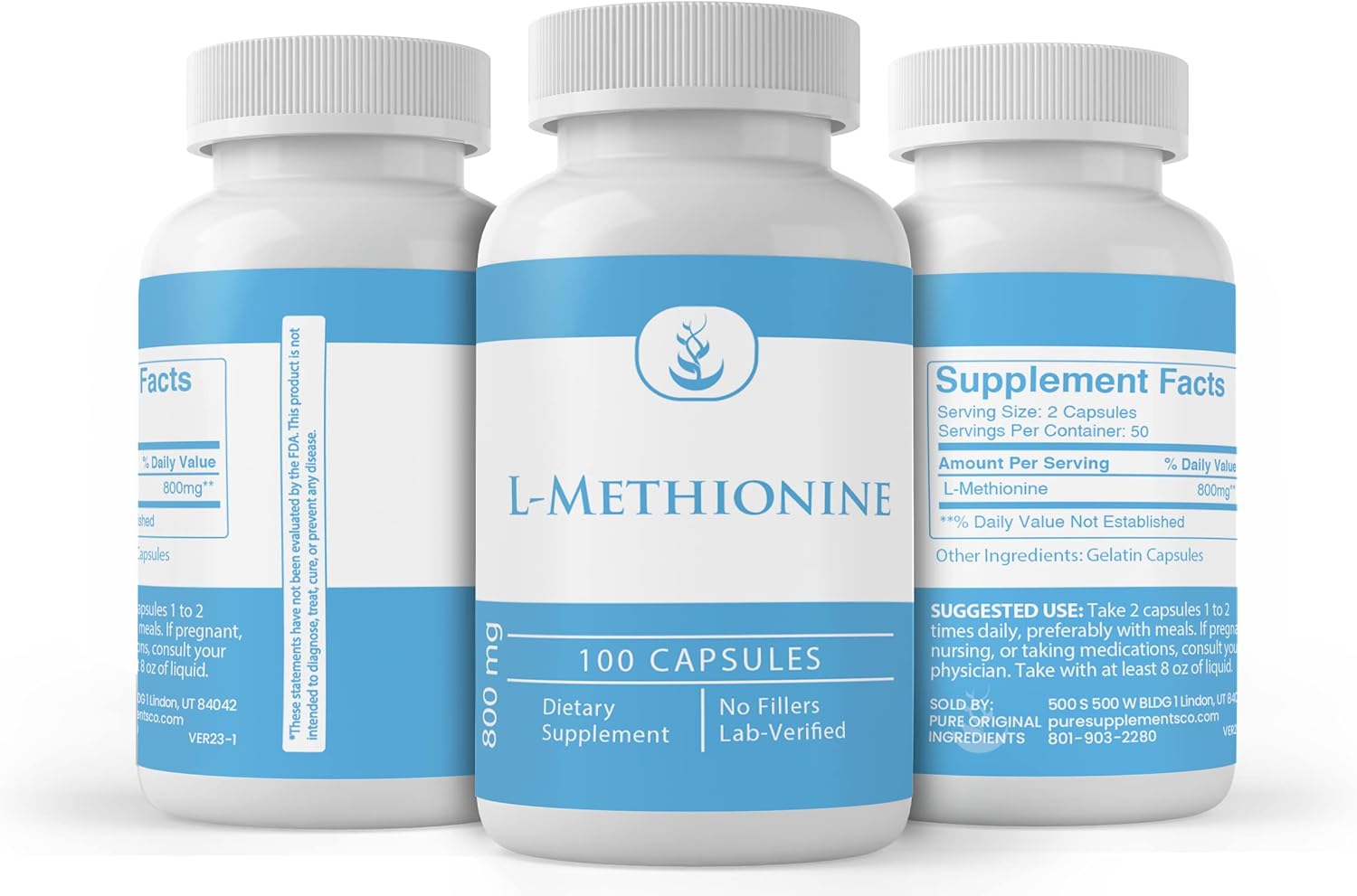 Pure Original Ingredients L-Methionine (100 Capsules) Always Pure, No Additives Or Fillers, Lab Verified