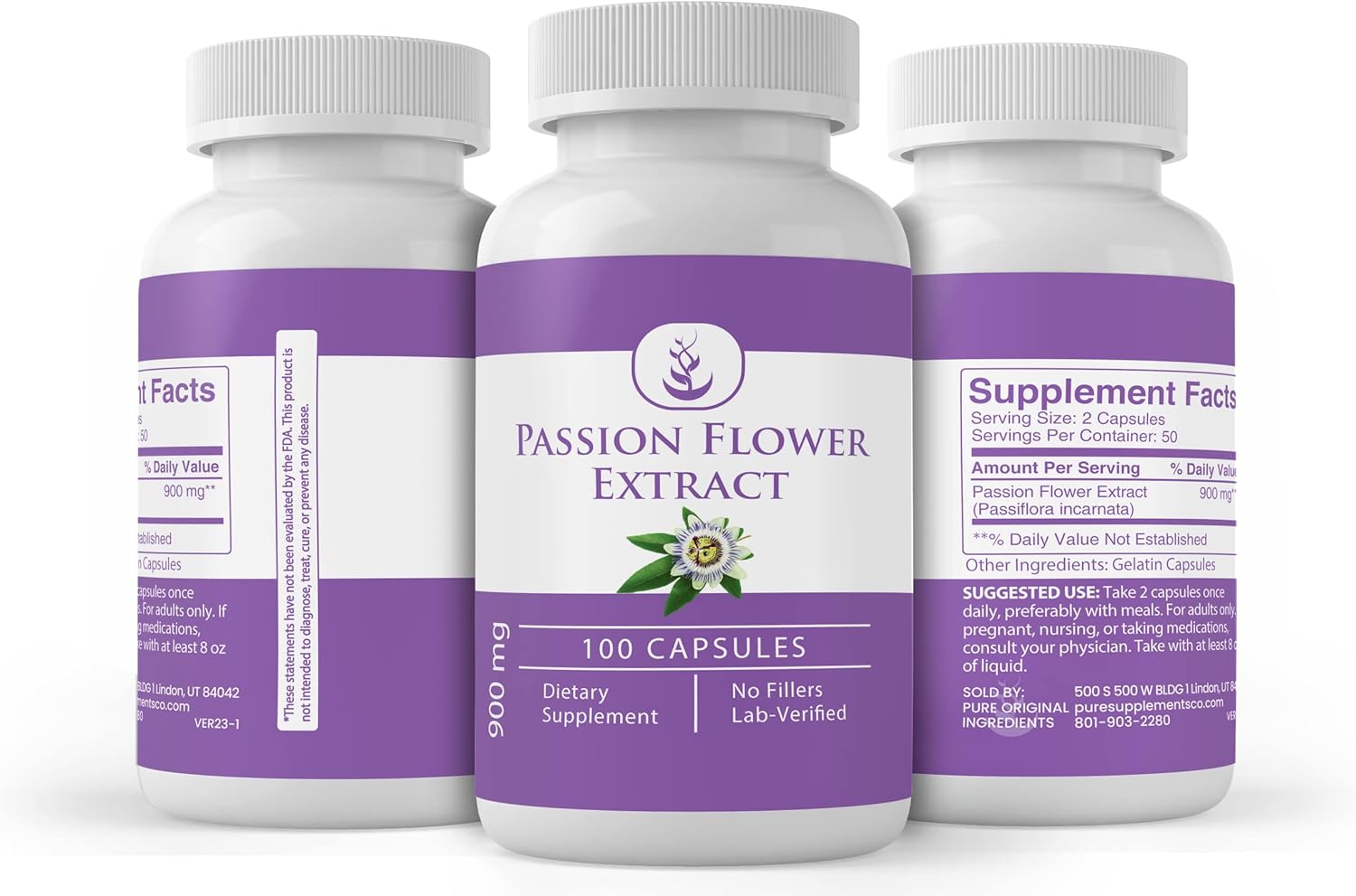 Pure Original Ingredients Passion Flower Extract, (100 Capsules) Always Pure, No Additives Or Fillers, Lab Verified