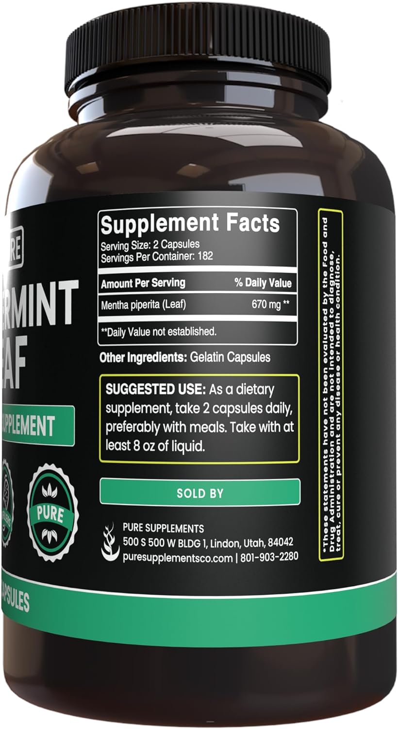 Pure Original Ingredients Peppermint Leaf (365 Capsules) No Magnesium Or Rice Fillers, Always Pure, Lab Verified
