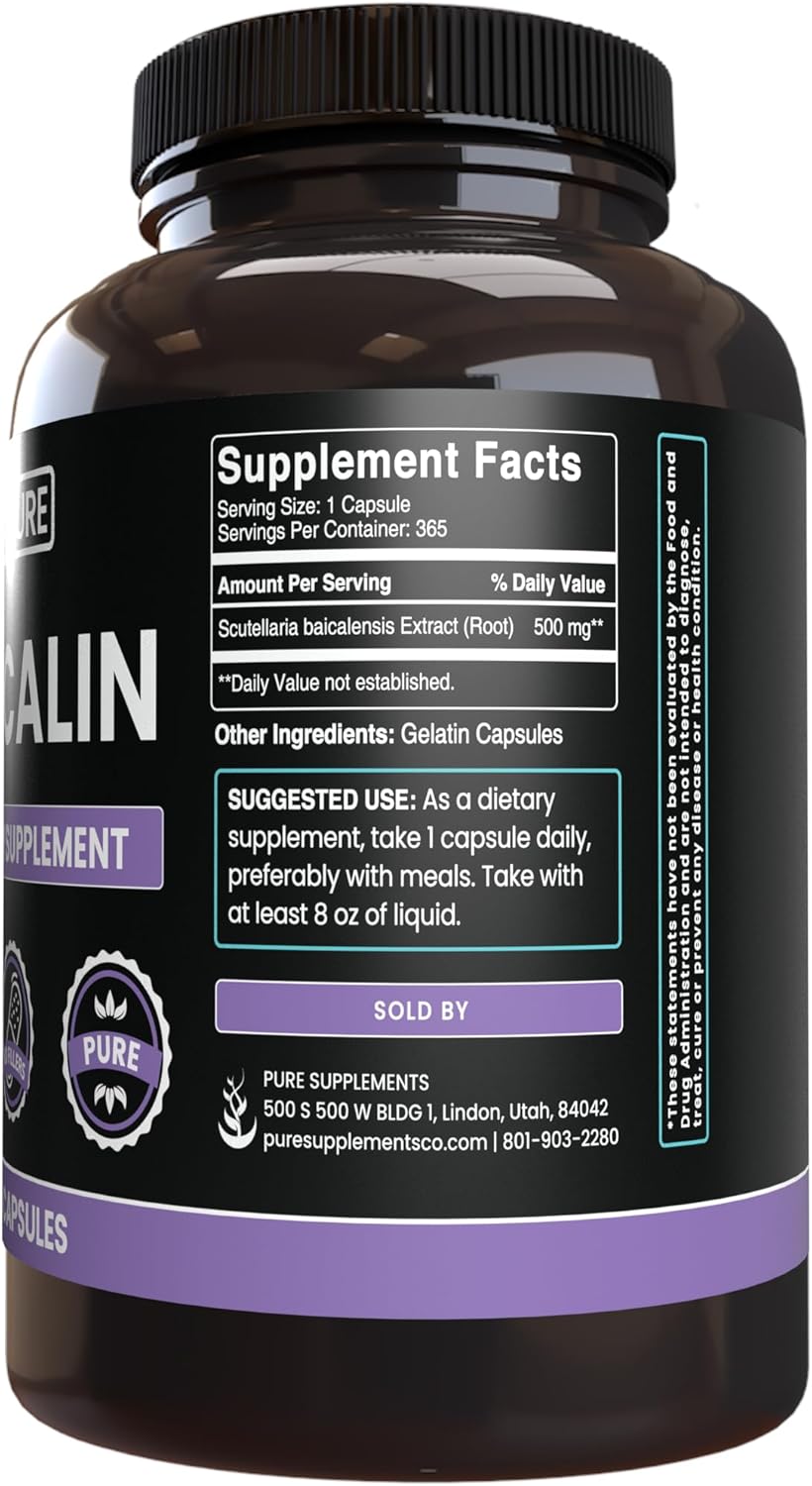 Pure Original Ingredients Skullcap Extract (365 Capsules), Baicalin, No Magnesium Or Rice Fillers, Always Pure, Lab Verified