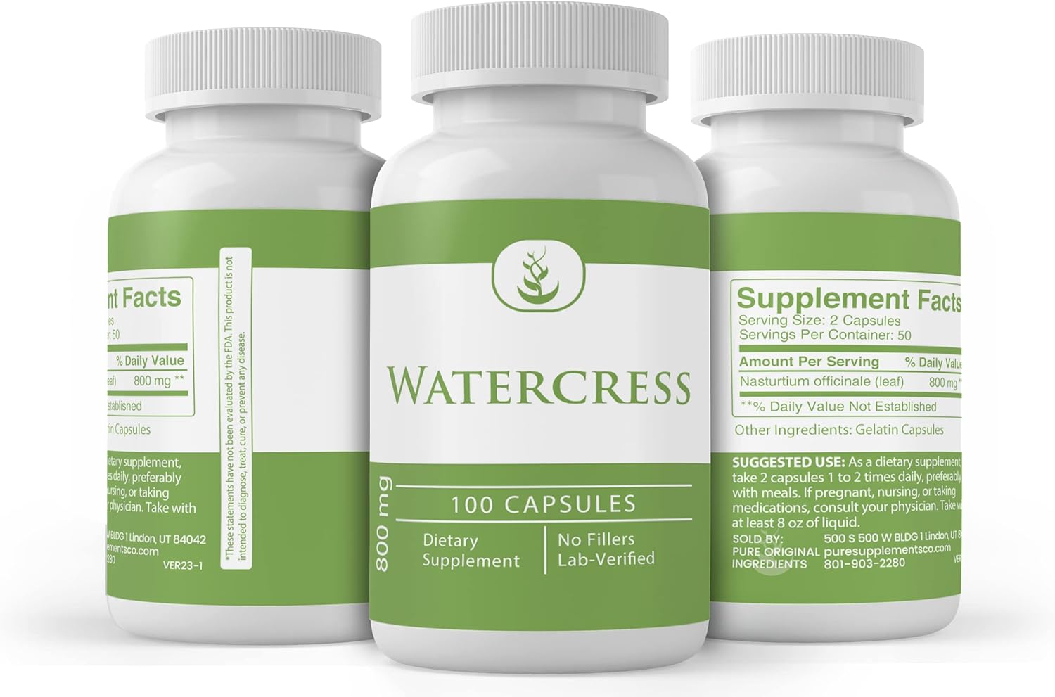 Pure Watercress Capsules Are Filled With A Single Ingredient, Providing A Pure Undiluted Supplement