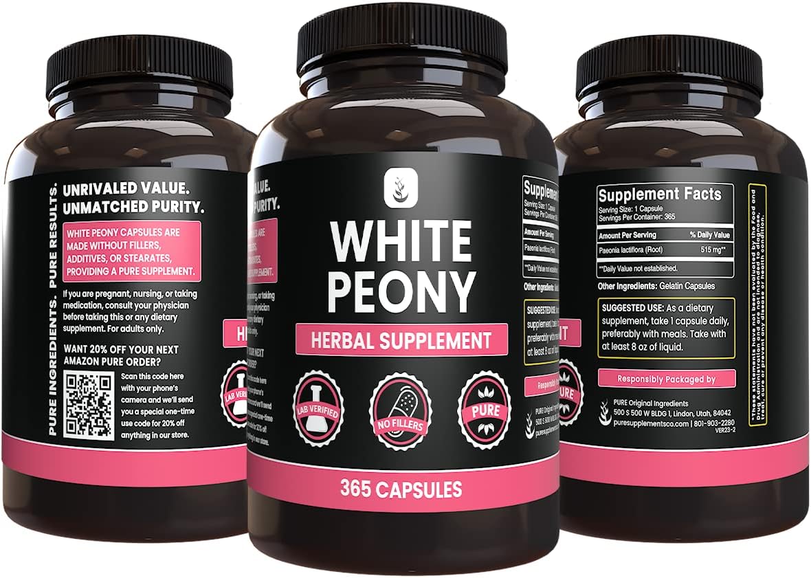 Pure Original Ingredients White Peony (365 Capsules) No Magnesium Or Rice Fillers, Always Pure, Lab Verified