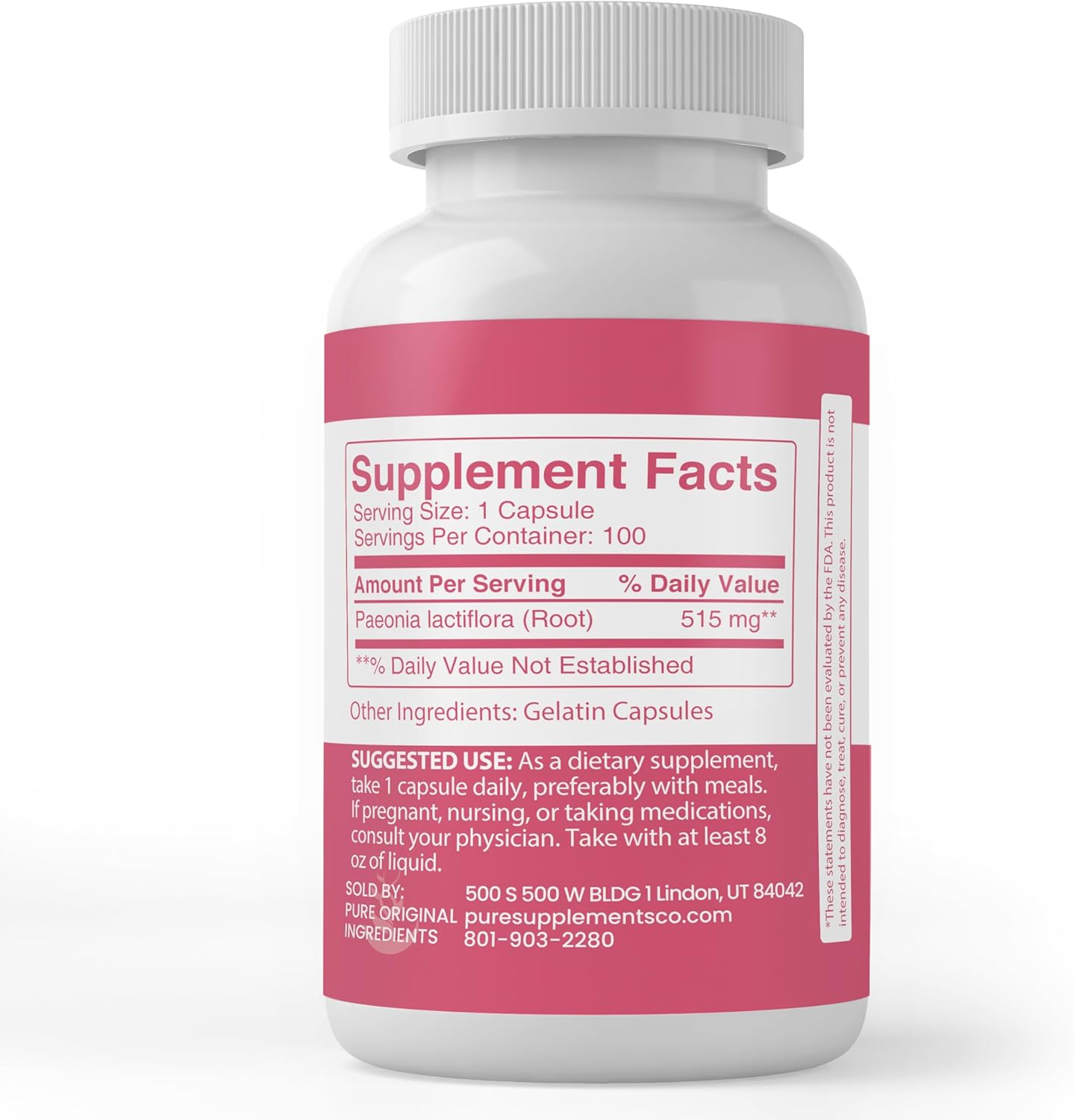 Pure Original Ingredients White Peony, Always Pure, No Additives Or Fillers, Lab Verified (100 Capsules)