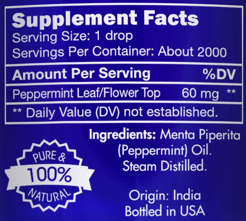 Peppermint Oil SAFE FOR INGESTION: GCMS and Microbial Tested; Certified and Bottled in USA; GMO-Free, Preservative-Free, Artificial-Ingredients-Free, Paraben-Free, Gluten-Free, Vegan, Cruelty-Free, Edible, Kid-Safe (when diluted)