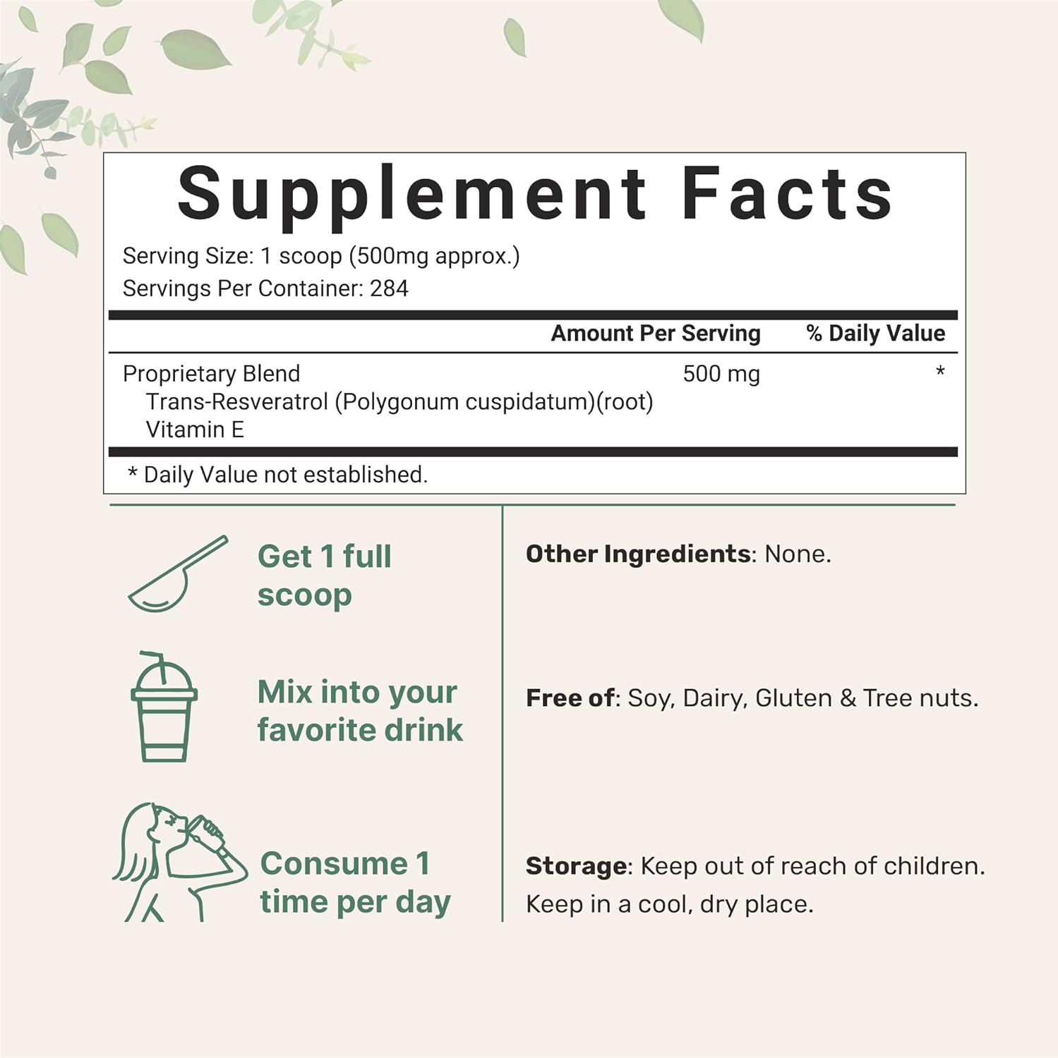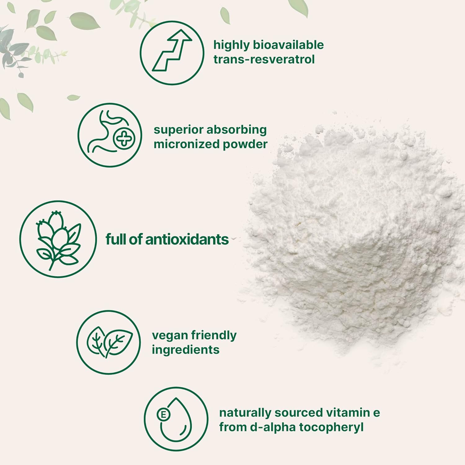 Pure Trans-Resveratrol Powder With Natural Vitamin E, 5 Ounce, 2 In 1 Formula, Micronized Powder For Better Absorption, Premium Resveratrol Supplement, Super Antioxidant, Vegan Friendly