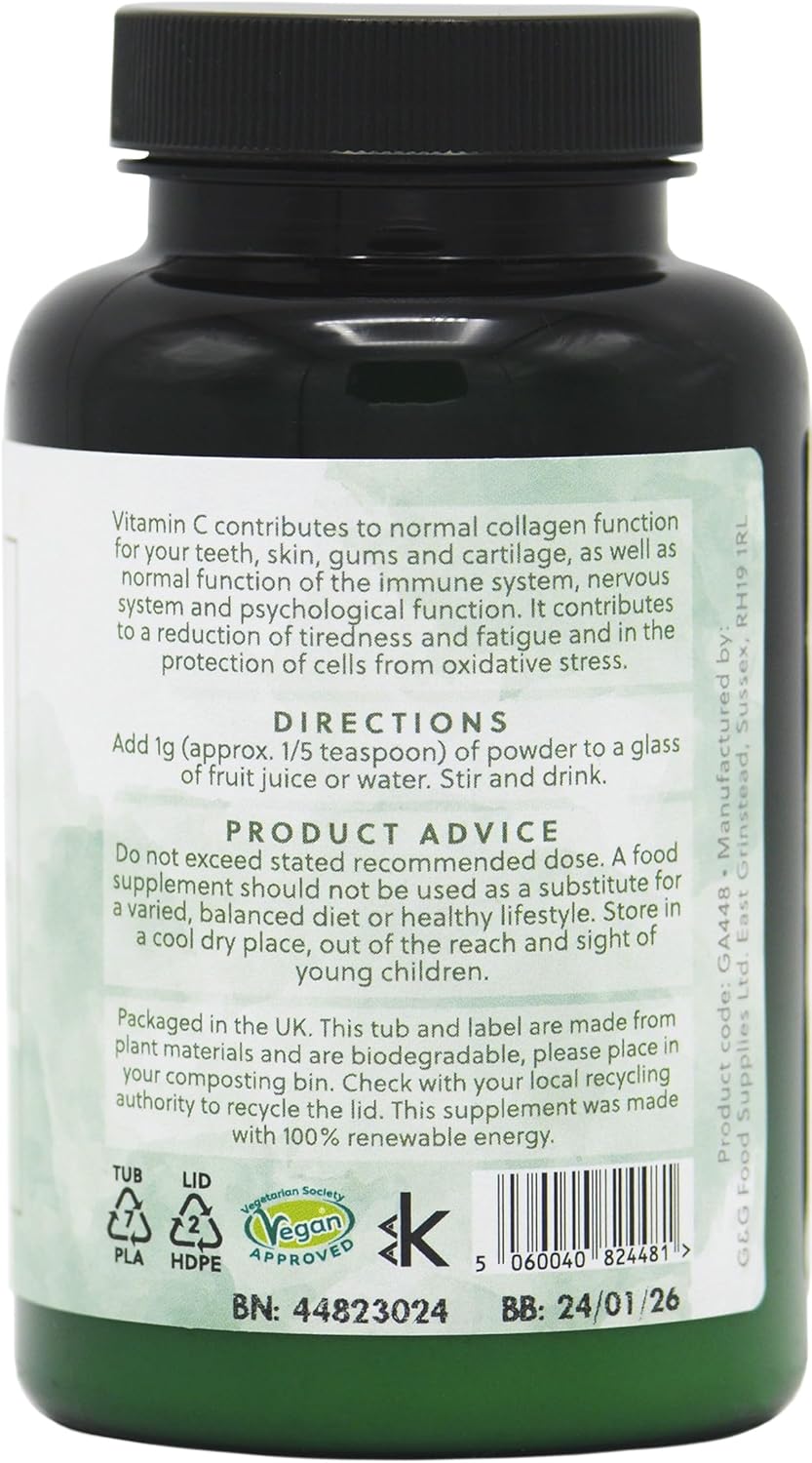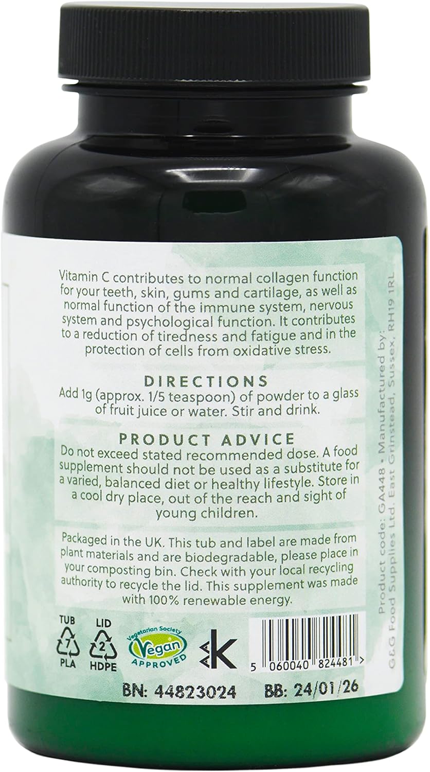 Pure Vitamin C Powder - Ascorbic Acid - 150G Unflavoured Powder - G&G Vitamins