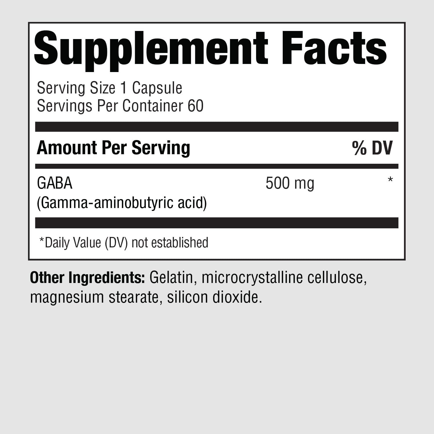 About this item Promotes Relaxation and Sleep: Our GABA supplement's mildly sedative qualities help soothe sore muscles and enhance sleep quality, supporting a restful night's sleep. Soothing Properties: GABA acts as a natural relaxant, potentially reducing mild pain and muscle tension for enhanced comfort and well-being. Balances Mood and Reduces Stress: By balancing neurotransmitter levels, GABA helps alleviate mild stress and promotes a positive, balanced mood. High-Quality and Pure: Made with non-GMO ingredients and free from milk, eggs, fish, crustacean, sesame, tree nuts, wheat, peanuts, or soybean, ensuring a pure and clean supplement. About PureFormulas: We are an American brand that offers effective and safe nutritional supplements in order to provide the best value to our customers, while promoting healthy lifestyles. We are proud that our products are manufactured in the USA, and we stand behind our customers' satisfaction. See more product details,Promotes Relaxation and Sleep: Our GABA supplement's mildly sedative qualities help soothe sore muscles and enhance sleep quality, supporting a restful night's sleep,Soothing Properties: GABA acts as a natural relaxant, potentially reducing mild pain and muscle tension for enhanced comfort and well-being,Balances Mood and Reduces Stress: By balancing neurotransmitter levels, GABA helps alleviate mild stress and promotes a positive, balanced mood,High-Quality and Pure: Made with non-GMO ingredients and free from milk, eggs, fish, crustacean, sesame, tree nuts, wheat, peanuts, or soybean, ensuring a pure and clean supplement,About PureFormulas: We are an American brand that offers effective and safe nutritional supplements in order to provide the best value to our customers, while promoting healthy lifestyles. We are proud that our products are manufactured in the USA, and we stand behind our customers' satisfaction