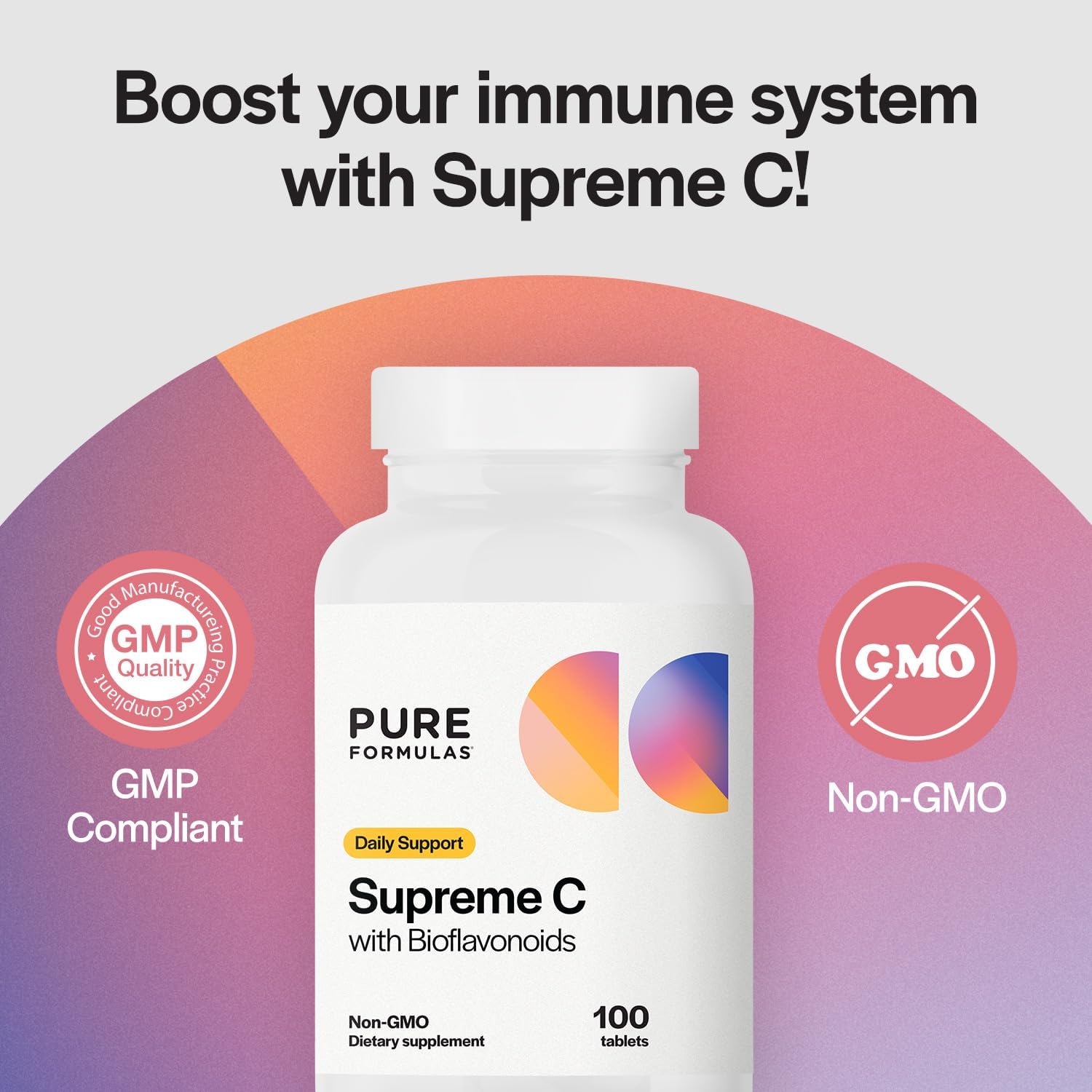 Pureformulas Supreme C With Bioflavonoids - 100 Tablets | 1000 Mg Vitamin C, Citrus Bioflavonoids Complex, Rose Hips | Immune Support & Antioxidant Boost | Allergen-Free