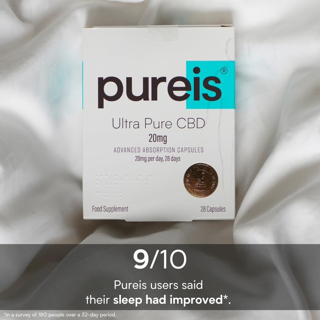 Pureis Cbd Capsules, Ultra Pure, Advanced Absorption - Cbd Supplement Fast Absorption - 20Mg - 0% Thc, Non-Addictive, Vegan, Gluten-Free - 7 Capsules