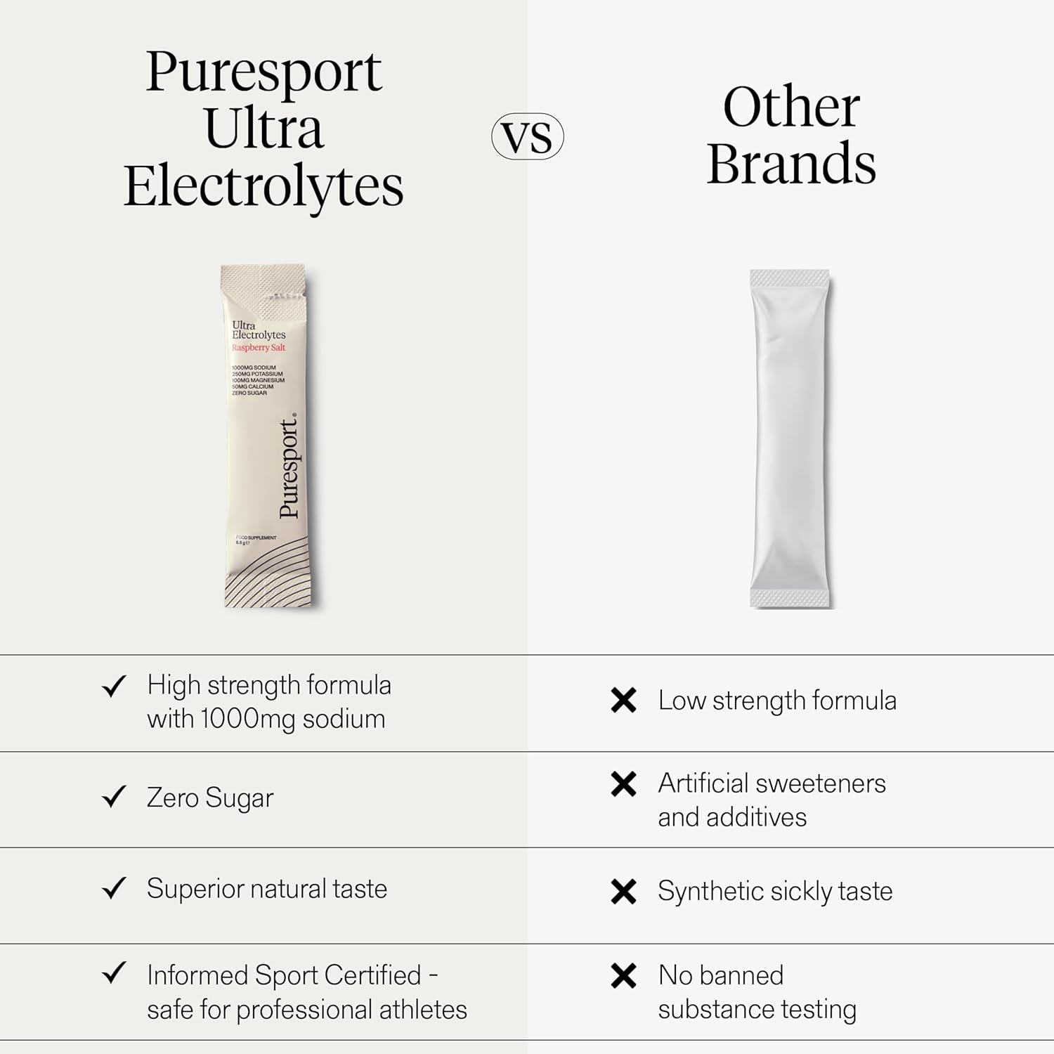 Puresport Ultra Electrolytes (Raspberry Salt/30 Sachets) | Science-Backed Electrolytes Powder | Optimises Hydration | Supports Muscle Function | No Added Sugar
