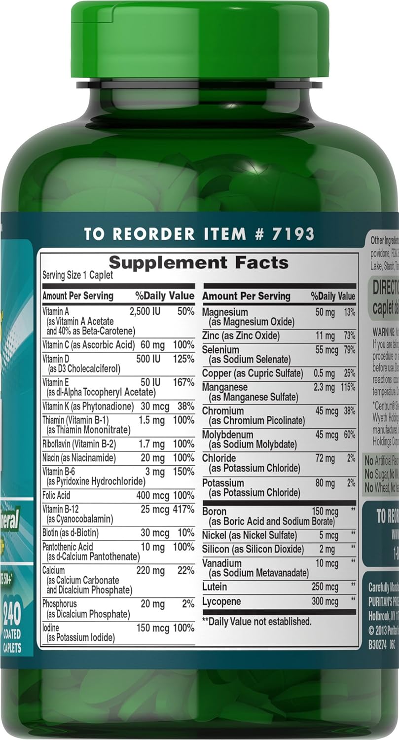 Puritan'S Pride Abc Plus Senior Multivitamin Multi-Mineral Formula Caplets