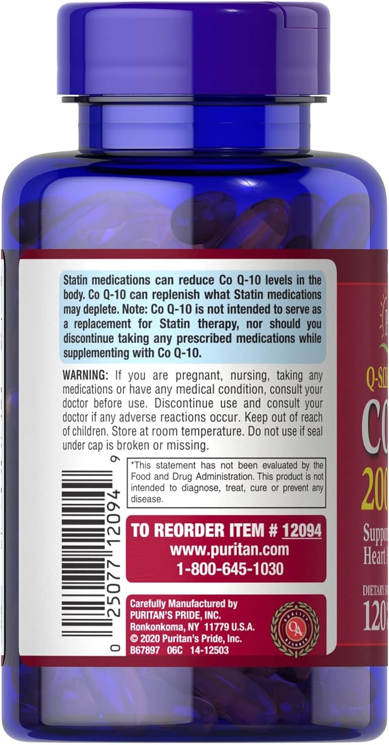 Coenzyme Q10 (Coq10) Is A Key Antioxidant That Has A Big Job: Supporting You As You Age Gracefully. Coenzyme Q10 (Coq10) Provides Powerful Antioxidant Support. The Body Produces Coq10 Naturally To Assist With The Growth And Maintenance Of Cells. Good Oral Health Is Linked To Cardiovascular Health, And Coenzyme Q10 Supports Both! Puritans Pride Coq10 Is Made With A Natural, Highly Bioavailable Form Of Coenzyme Q10: Q-Sorb. This Supplement Is Important For Statin Medication Users. Taking Q-Sorb Coq10 Can Help Replenish Depletions Of The Antioxidant Which Are Caused By The Medications. Our Capsules Are Hermetically Sealed In Easy To Swallow, Rapid-Release Softgels For Superior Absorption.++Note: Statin Medications Can Reduce Coq10 Levels In The Body. Coq10 Can Replenish What Statin Medications Can Deplete. Coq10 Is Not Intended To Serve As A Replacement For Statin Therapy, Nor Should You Discontinue Taking Any Prescribed Medications While Supplementing With Co Q-10. Adults May Take 1 Softgel Up To 2 Times Daily, Preferably With Meals. Our Coenzyme Q10 Supplement Is Free Of Artificial Flavors And Sweeteners. It Contains No Preservatives, Sugar, Starch, Milk, Lactose, Gluten, Wheat, Yeast, Or Fish. These Statements Have Not Been Evaluated By The Food And Drug Administration. These Products Are Not Intended To Diagnose, Treat, Cure Or Prevent Any Disease