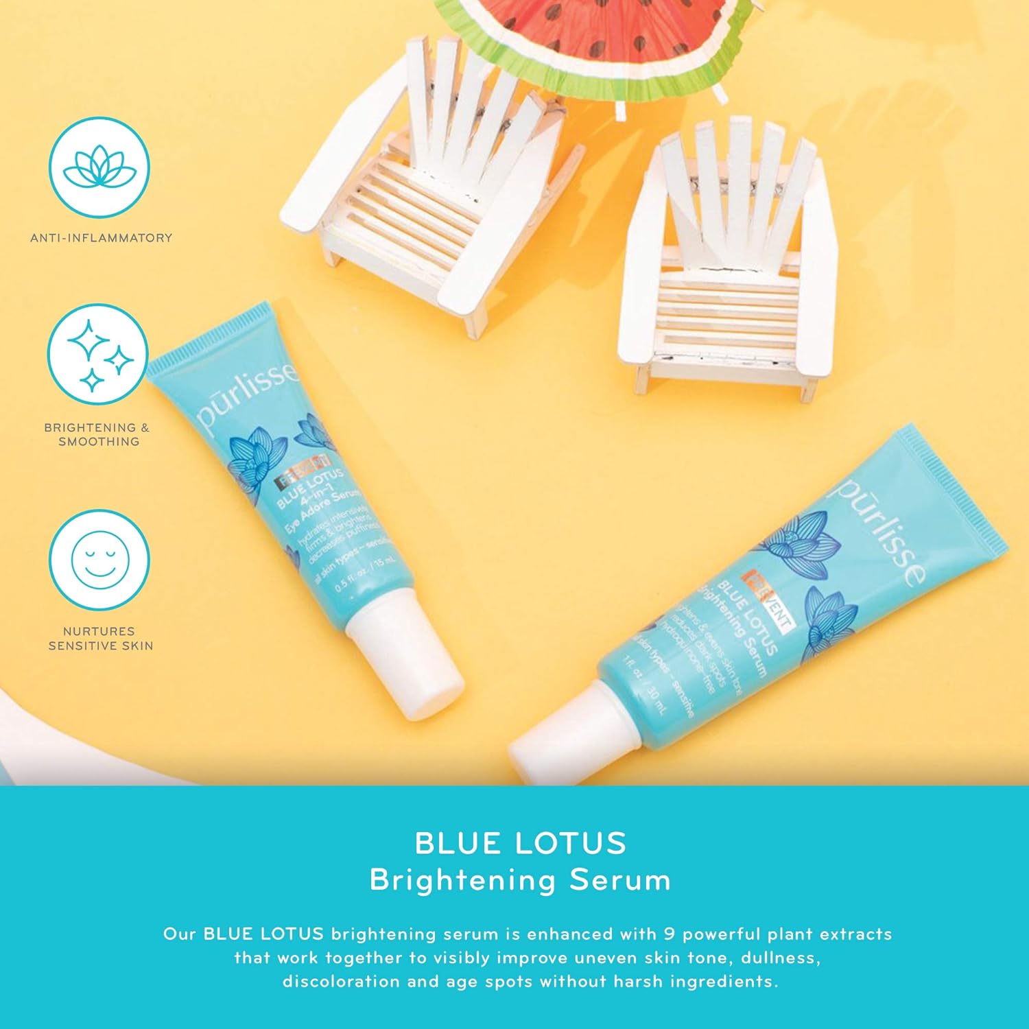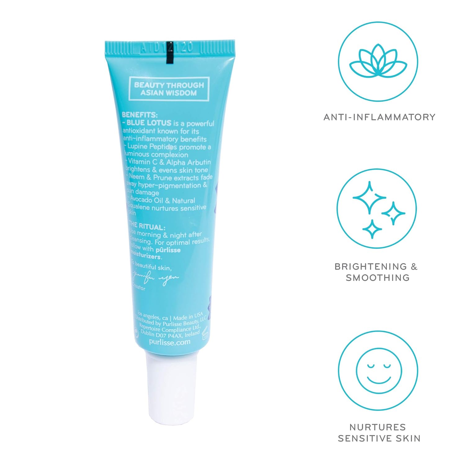 purlisse Blue Lotus Brightening Serum - Anti Wrinkle and Anti Aging, Squalane Dark Spot Lightening Serum for All Skin Types, 1