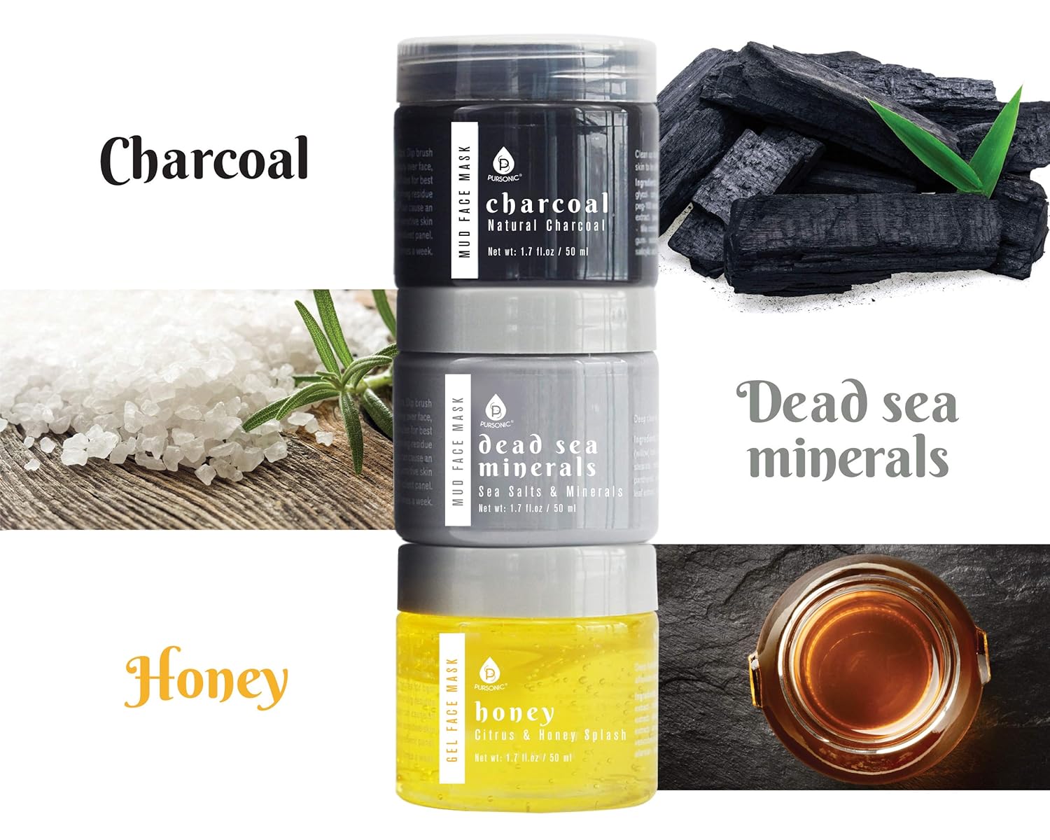 TRIPLE PACK SAVINGS: Get 3 masks (Dead Sea Minerals, Honey Mask, and Charcoal) all in 1 package