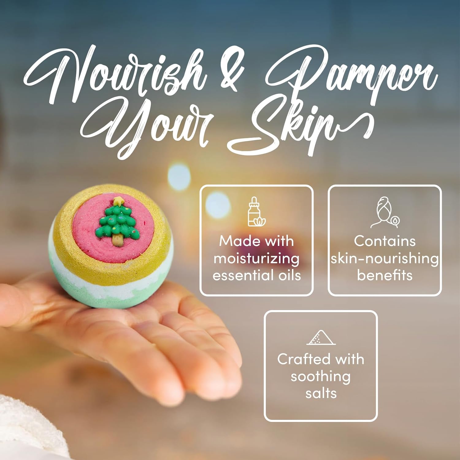 Luxurious Bath Bomb Experience: Transform your bath into a spa-like retreat with our holiday-themed bath bomb collection, infused with essential oils to promote relaxation and a calming experience. A thoughtful choice for bath gifts or holiday gifts for women and moms