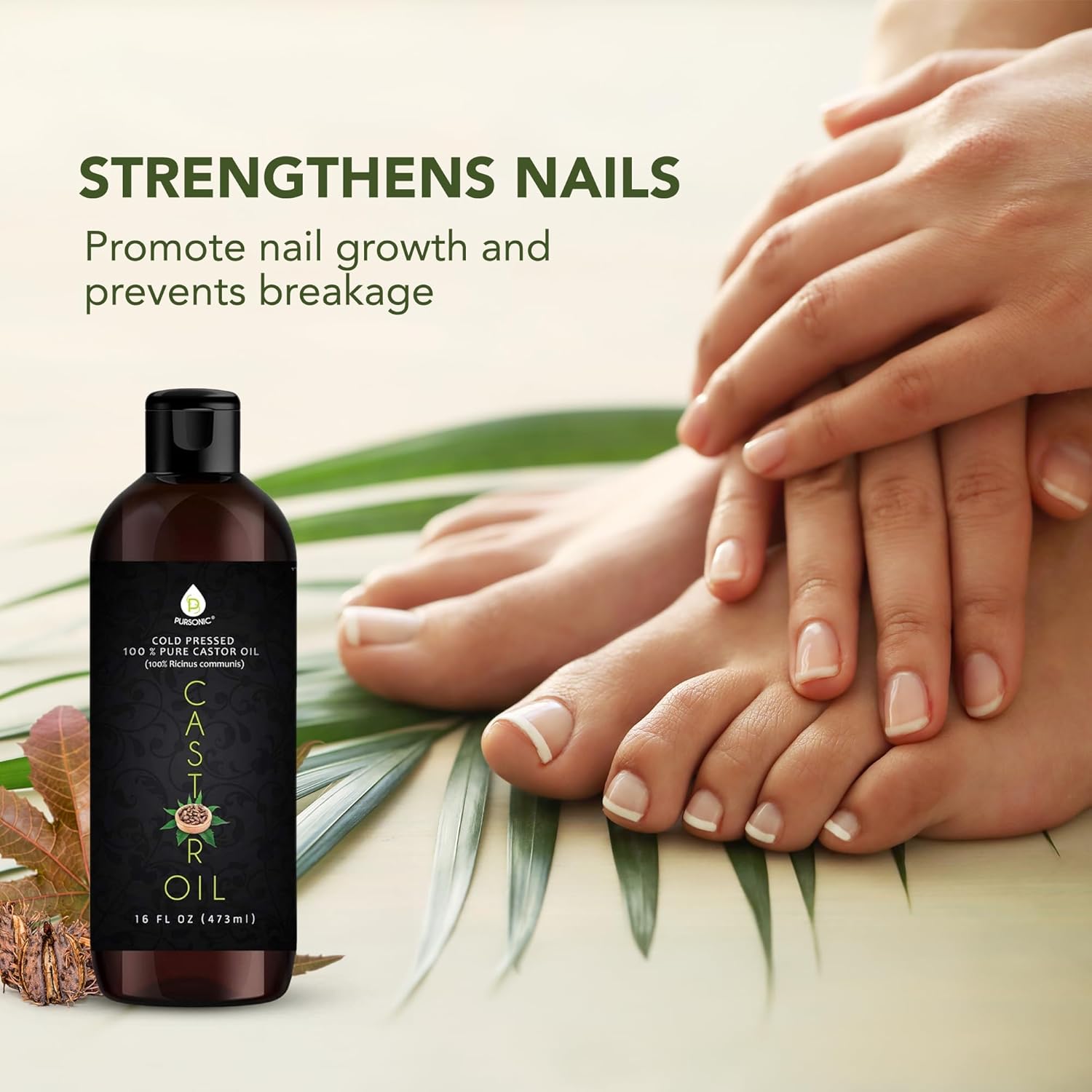 Pursonic Castor Oil (16Oz) Cold-Pressed, 100% Pure, Hexane-Free Castor Oil-Moisturizing & Healing, For Dry Skin, Hair Growth - For Skin, Hair Care, Eyelashes