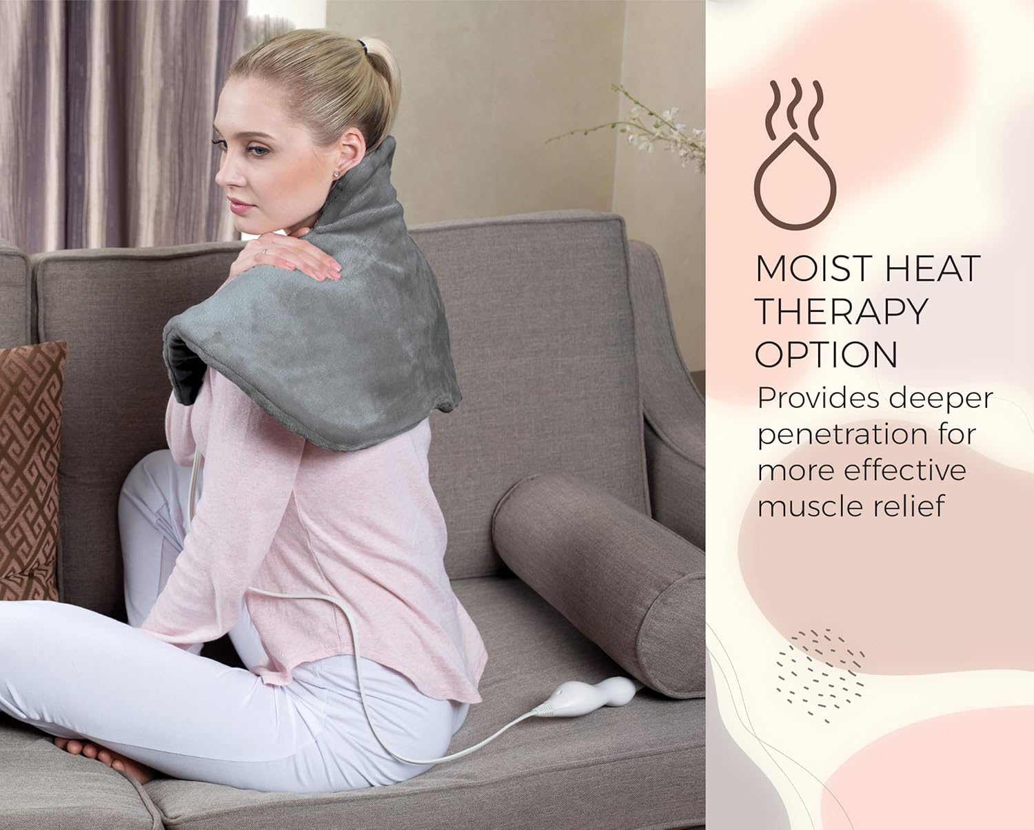 PAIN & SORE MUSCLE RELIEF-Heating pad for back/neck pain relief delivers a stream of heat to the affected area, eases back pain, unbearable cramps, and provides pleasant muscle relaxation