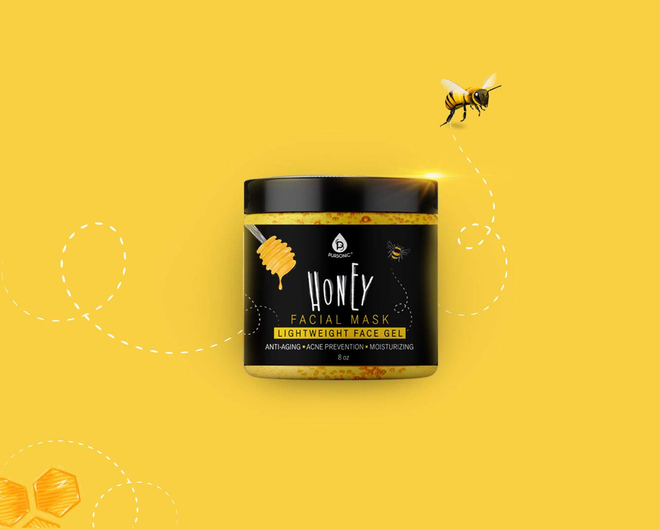 Pursonic Facial Mask Collection Of Black Charcoal, Red Clay & Honey Mask, Sourced From All Over The World For A Clean And Healthy Face, 8Oz(Honey Mask)