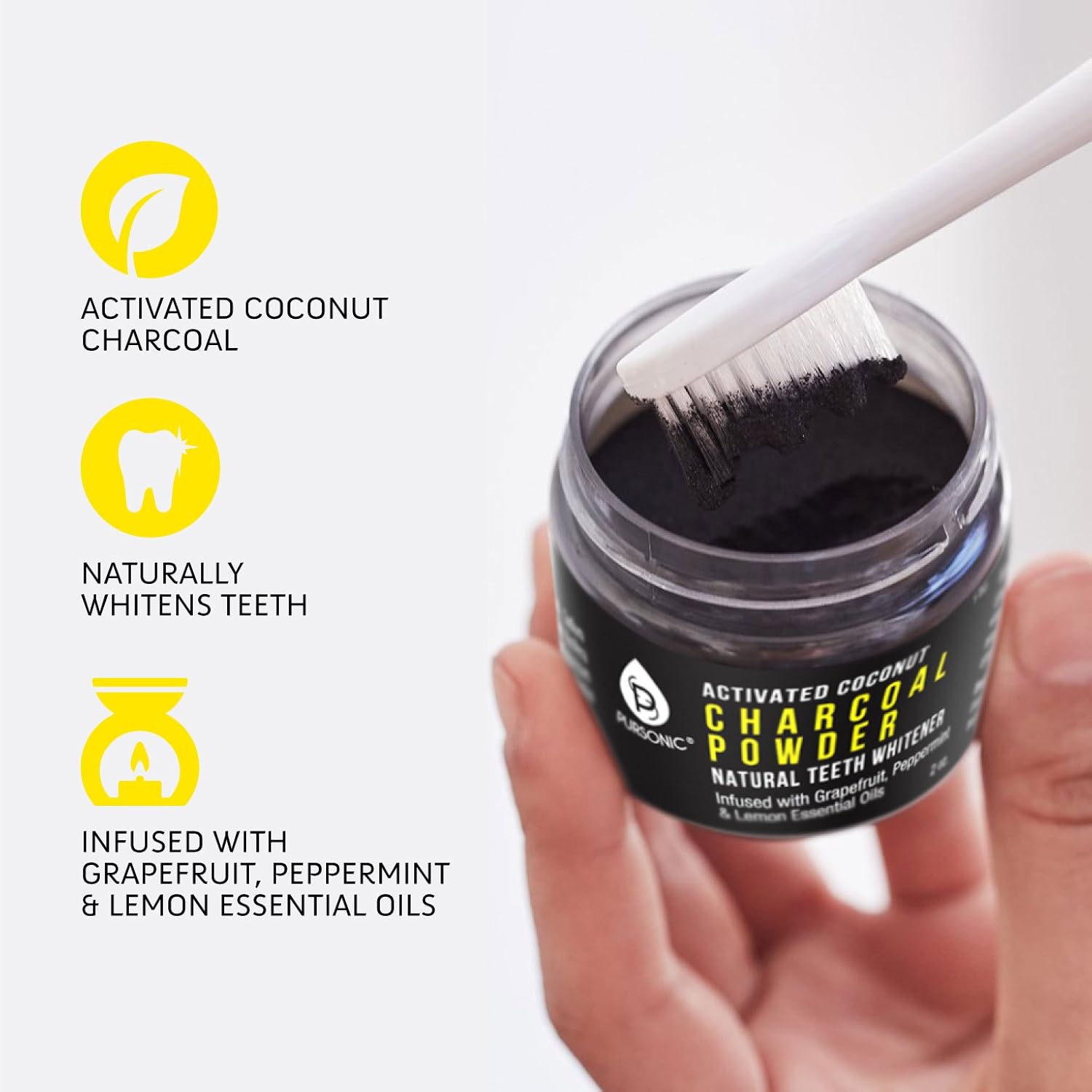 Pursonic Teeth Whitening Charcoal Powder Natural, Infused With Grapefruit,Peppermint & Lemon Essential Oils, 2Oz