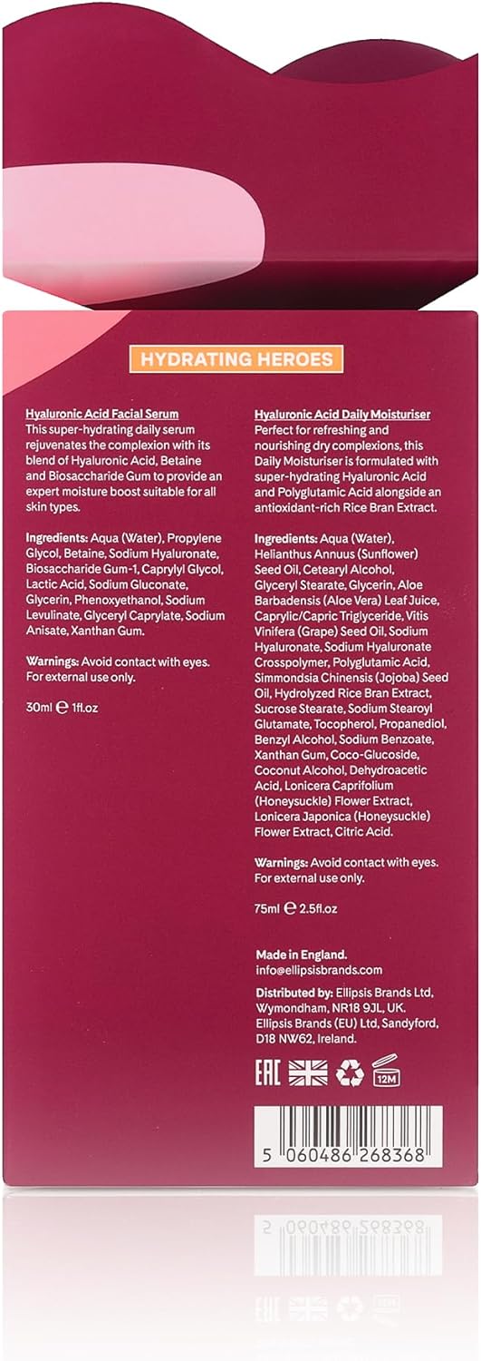 Q+A Hydrating Heroes Skincare Gift Set, Contains Hyaluronic Acid Facial Serum 30Ml, Hyaluronic Acid Daily Moisturiser 75Ml, Natural Hydration For All Skin Types, Softens & Plumps For Radiant Glow
